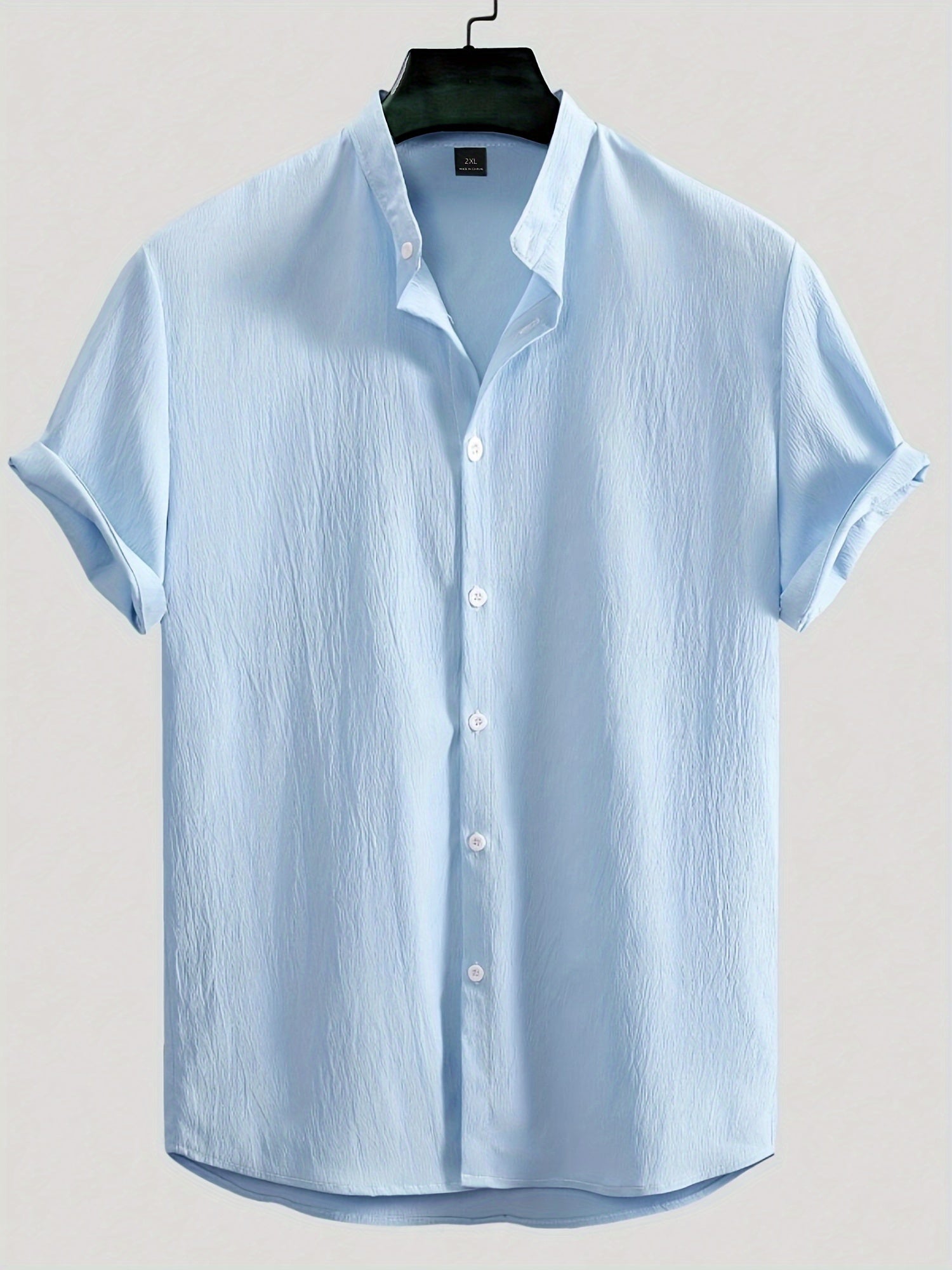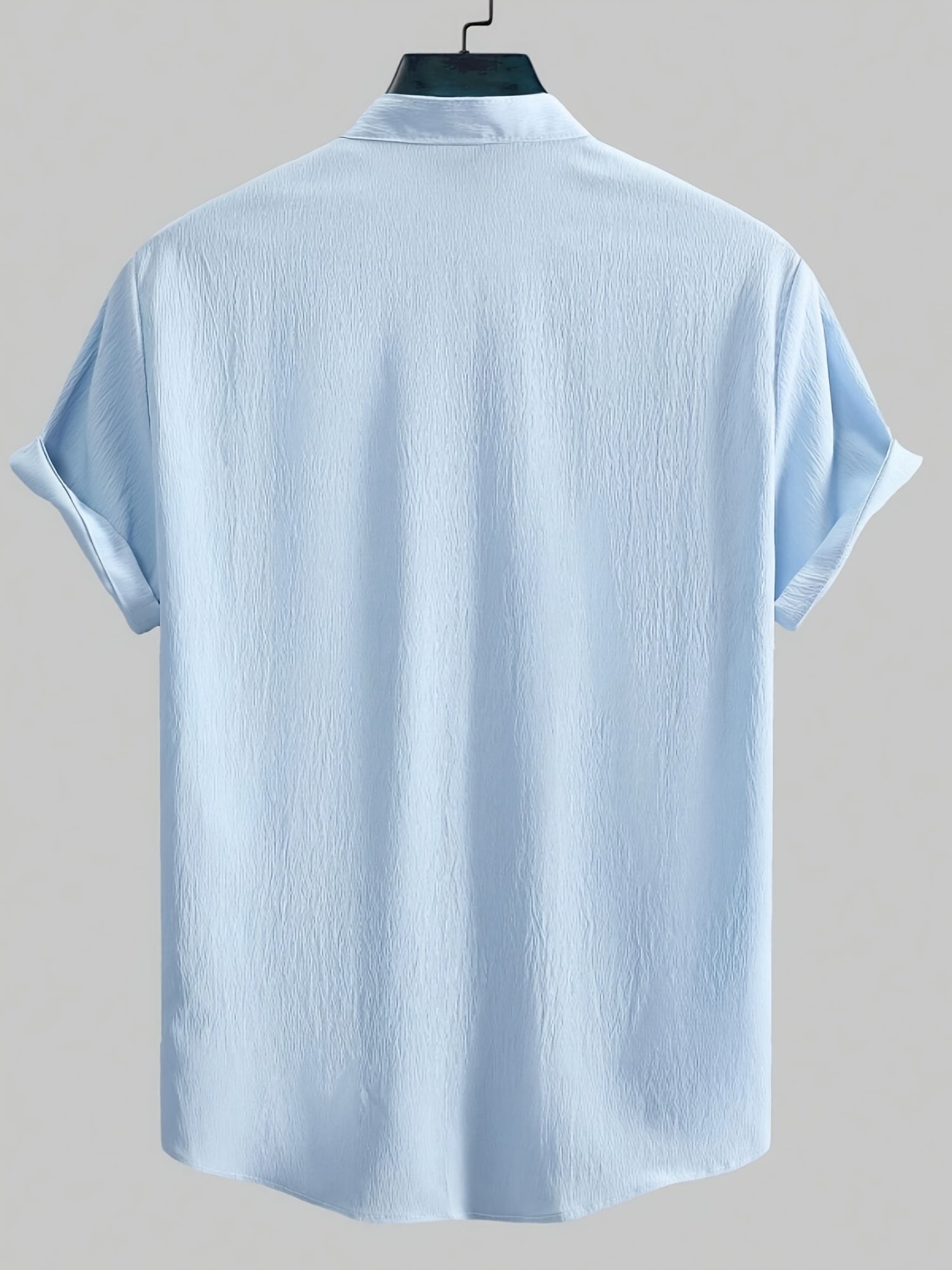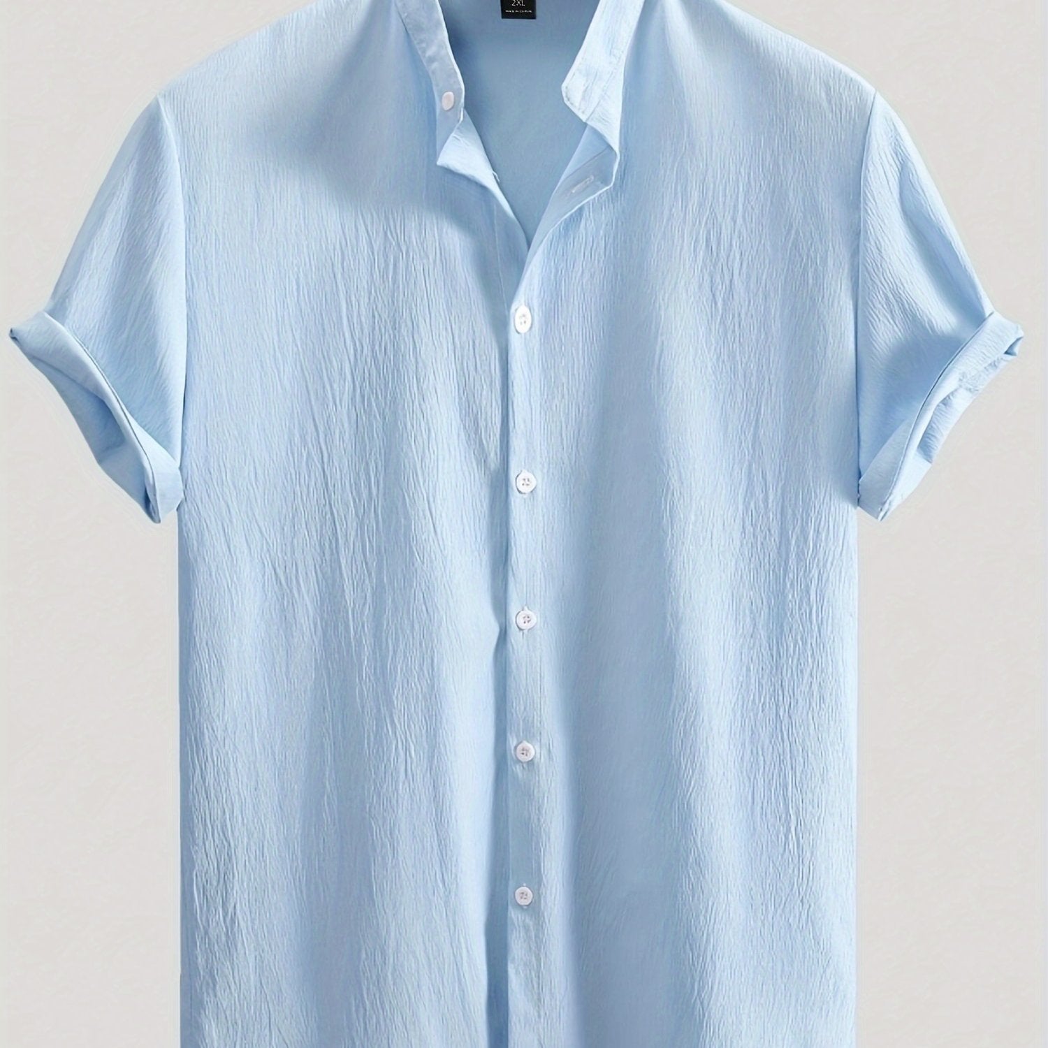 Erkaklar uchun engil ko'k tasodifiy qisqa yengli turli ko'ylak - yozgi zaruriyat, polyester aralashmasi, mashinada yuvish mumkin, KATTA O'LCHAM