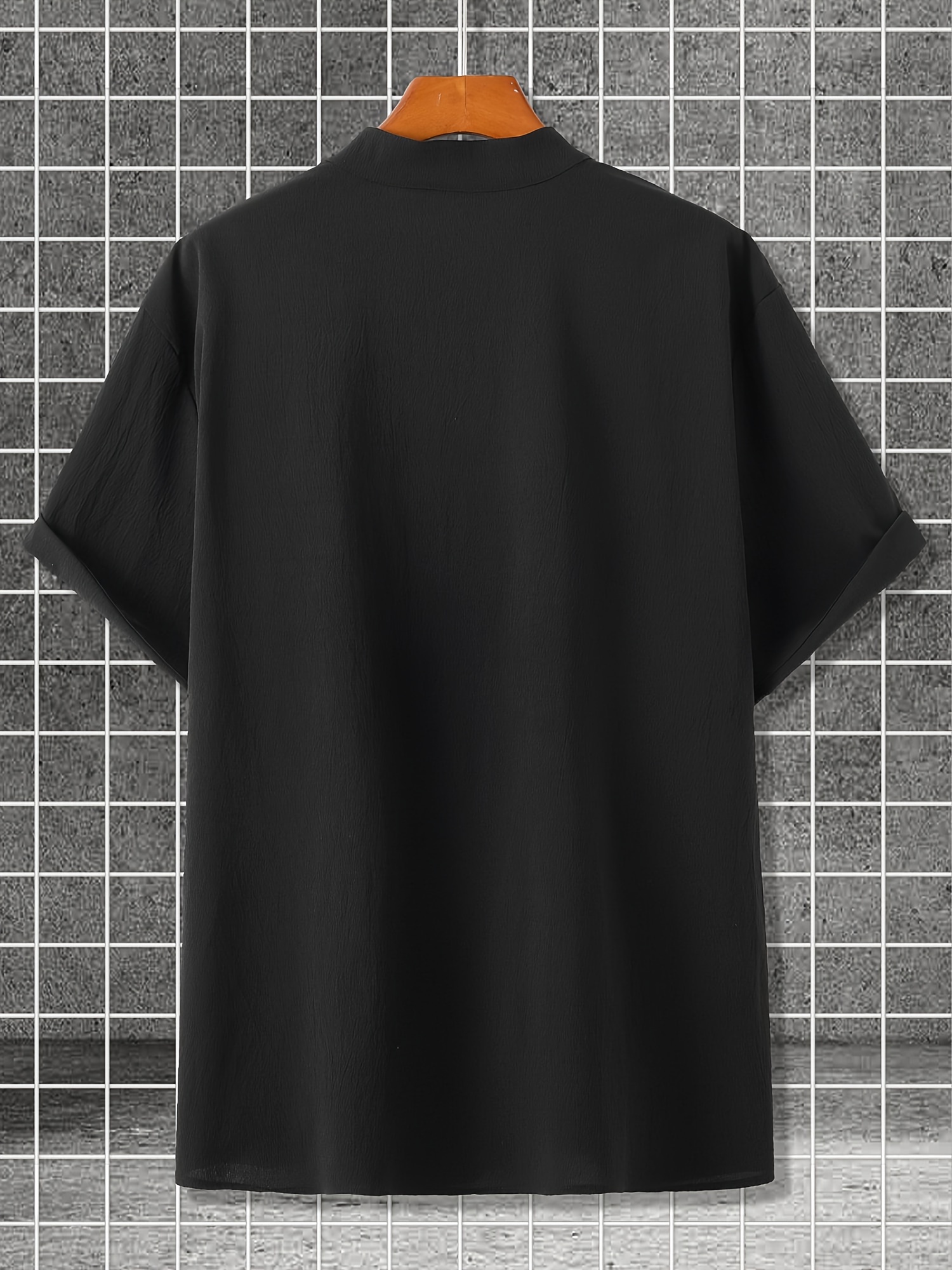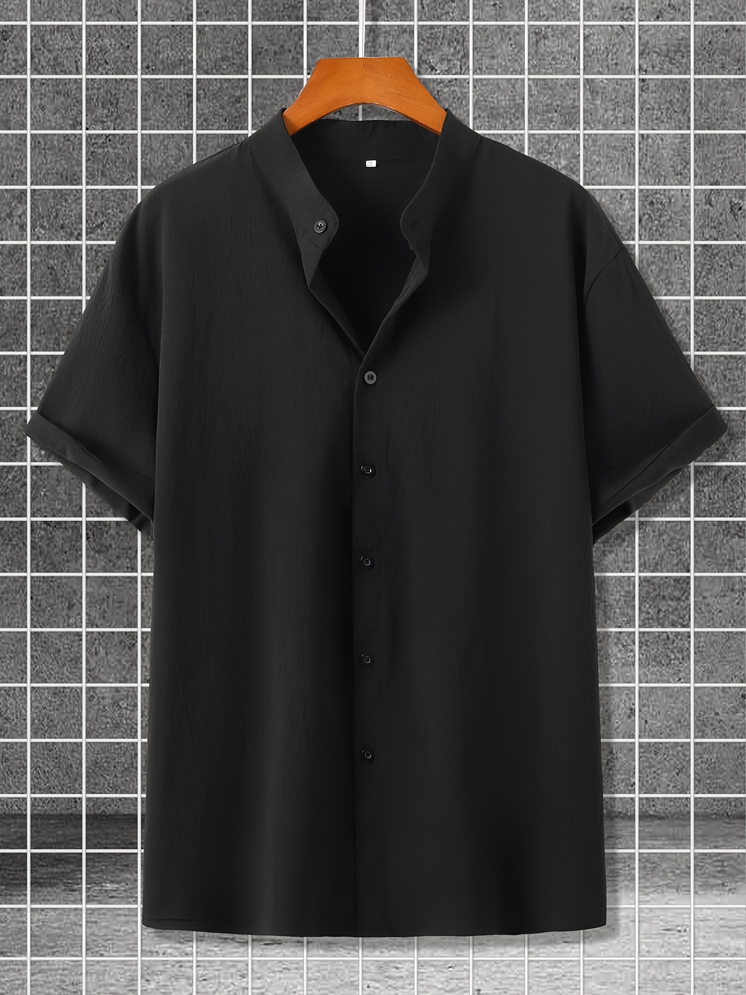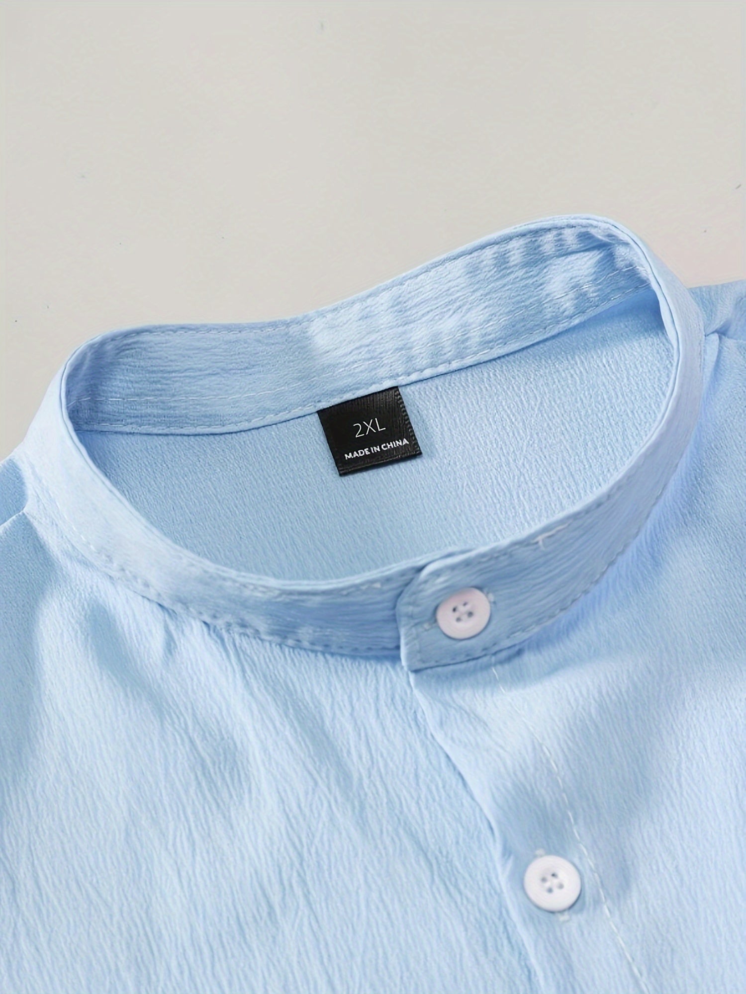 Erkaklar uchun engil ko'k tasodifiy qisqa yengli turli ko'ylak - yozgi zaruriyat, polyester aralashmasi, mashinada yuvish mumkin, KATTA O'LCHAM