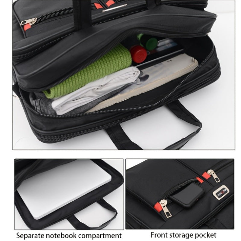 Erkaklar uchun ko'p funksiyali biznes sumkasi, tasodifiy sumka va kesma variantlari bilan, katta sig'im, polyester astar bilan mustahkam mato material, biznes va tasodifiy foydalanish uchun bir nechta cho'ntaklar.