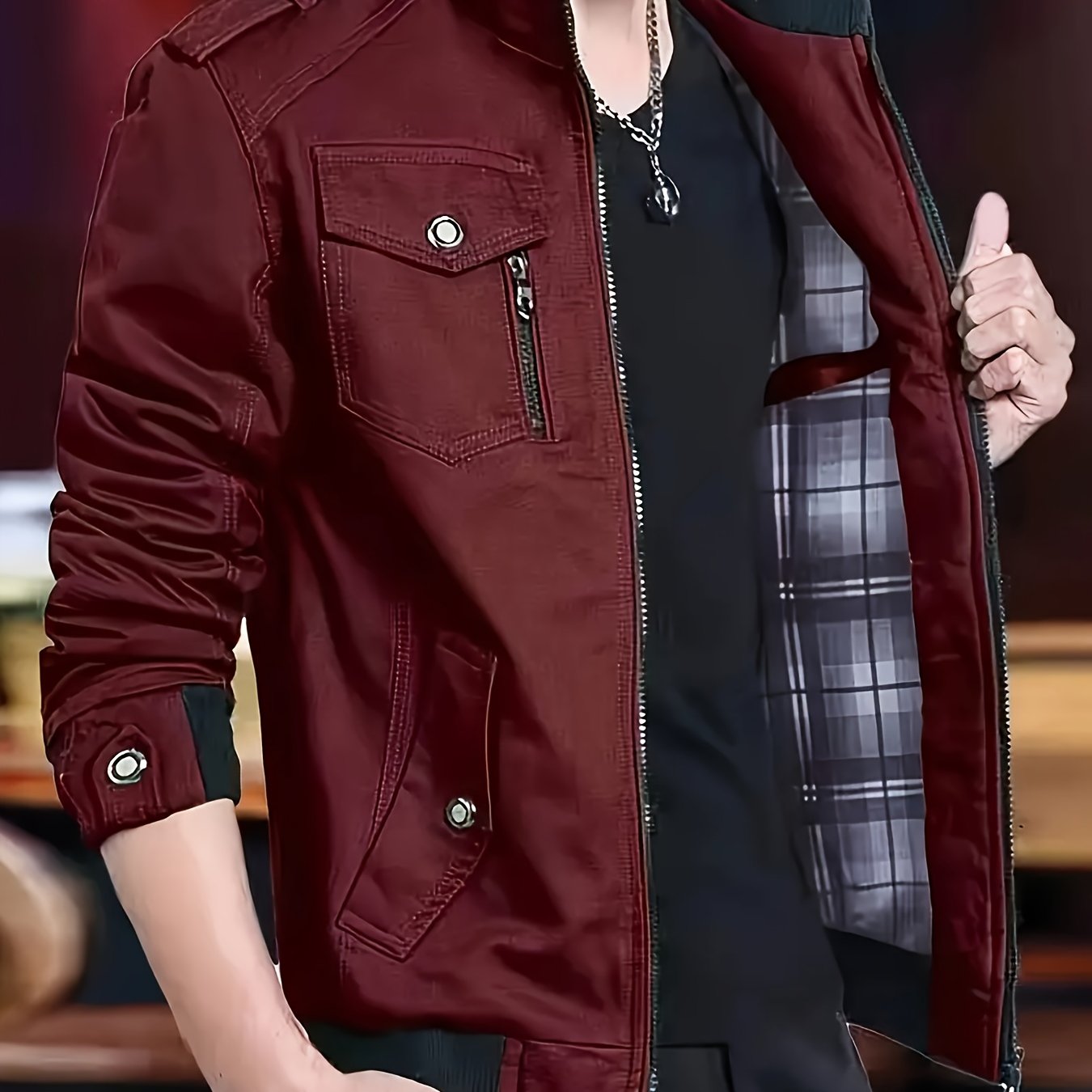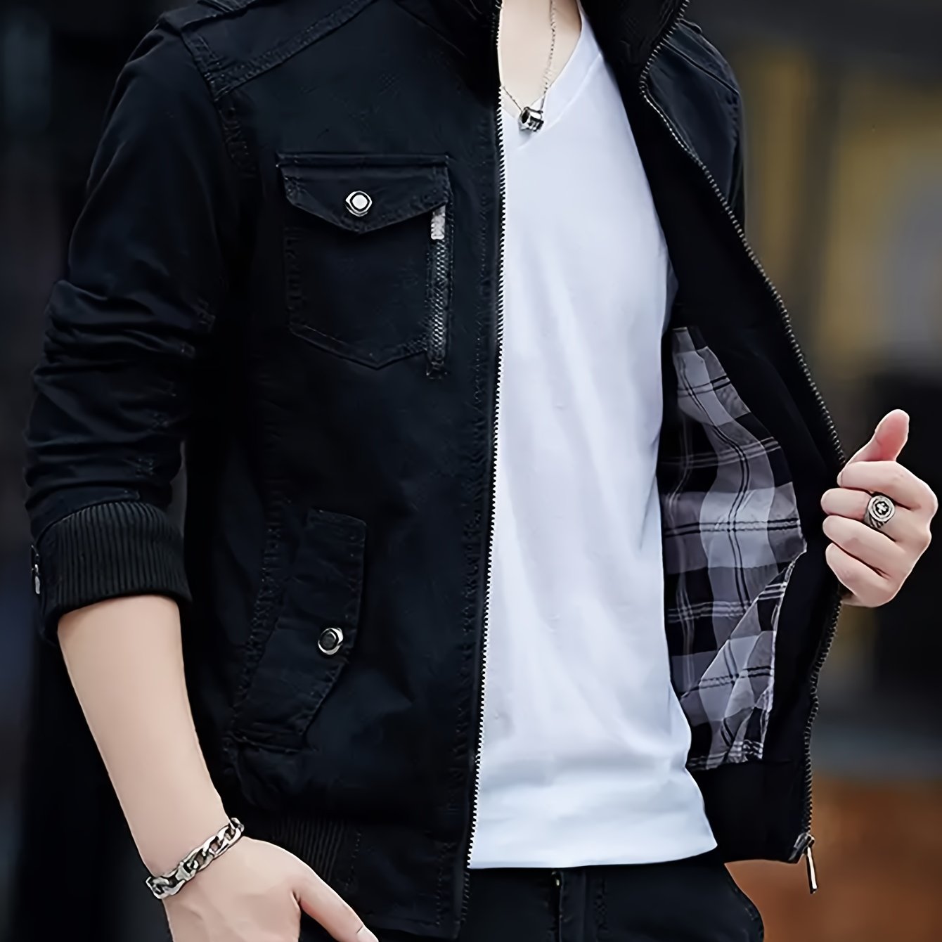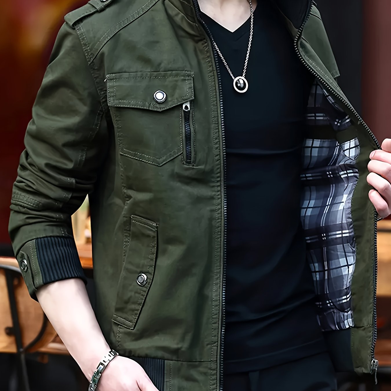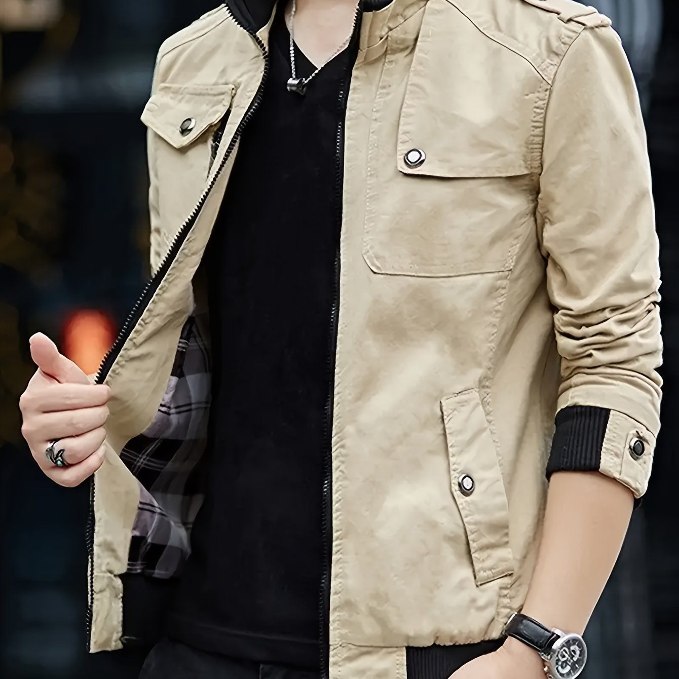 Erkaklar uchun ko'p cho'ntakli bej rangli yukka palto, kuz/qish mavsumi uchun, zamonaviy va amaliy ochiq havoda kiyish uchun.
