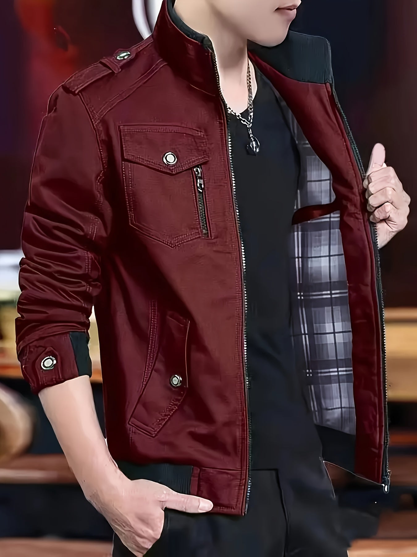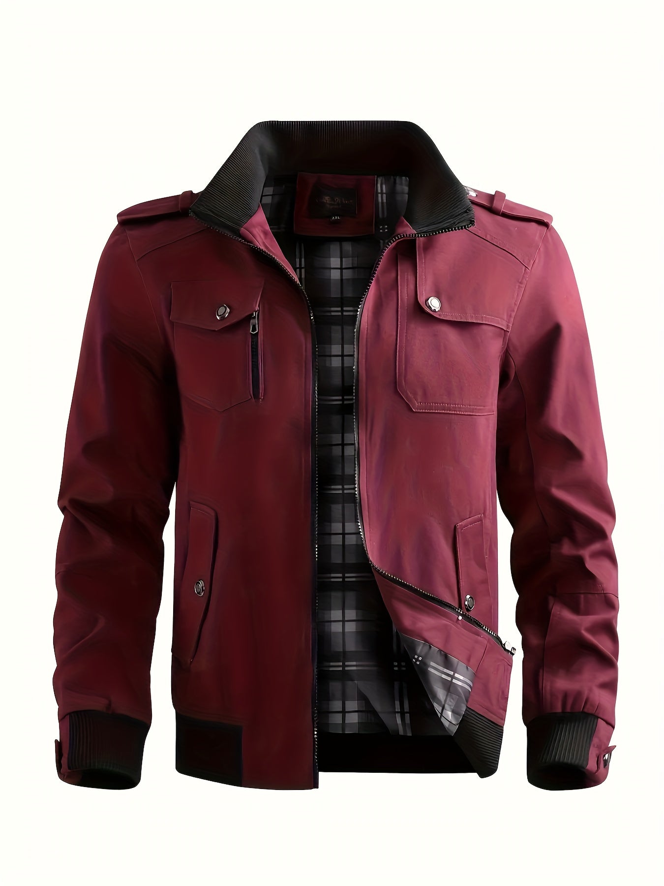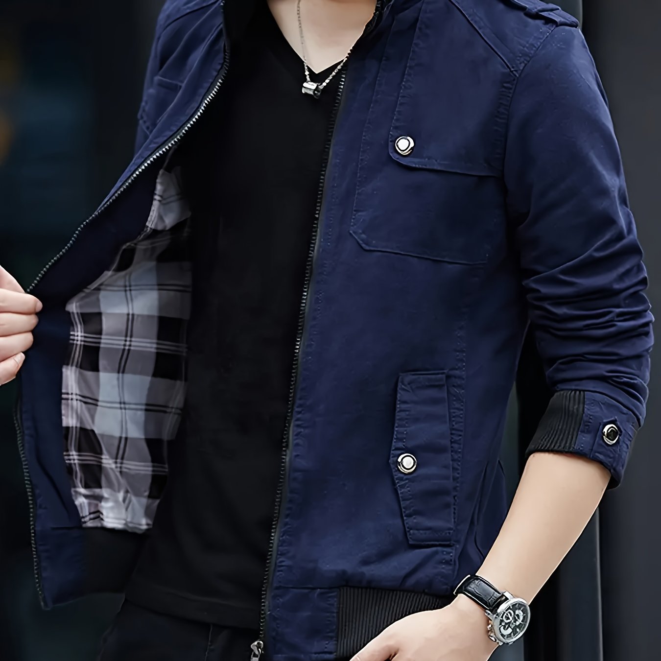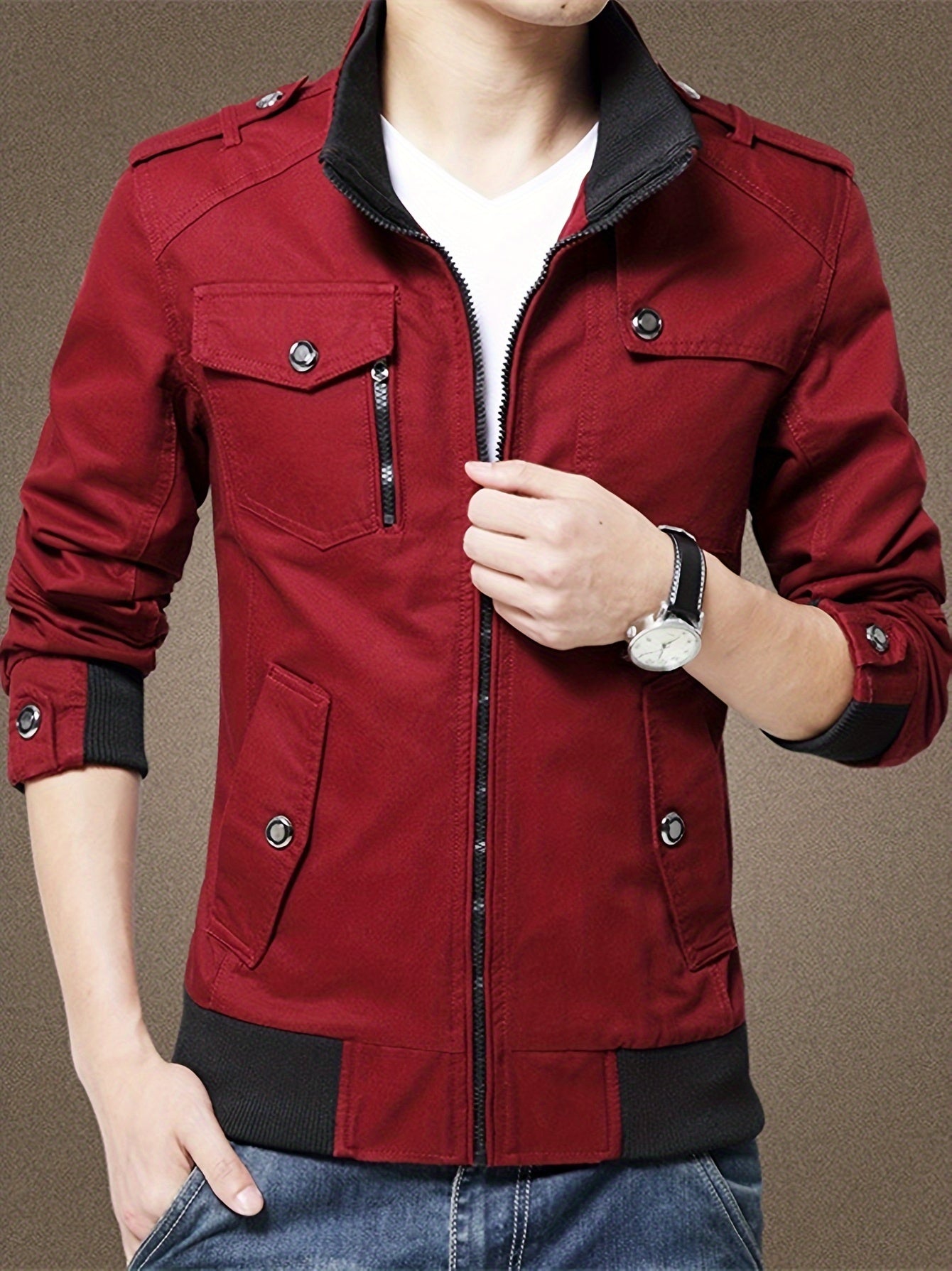 Erkaklar uchun ko'p cho'ntakli bej rangli yukka palto, kuz/qish mavsumi uchun, zamonaviy va amaliy ochiq havoda kiyish uchun.