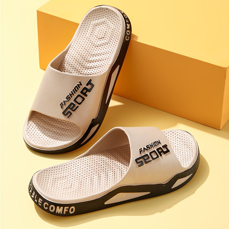 Erkaklar uchun sirpanmaydigan yozgi plyaj sandallari, hidga chidamli PVC materialdan tayyorlangan bo'lib, ichki va tashqi qulaylik uchun tuzilgan taglikka ega.