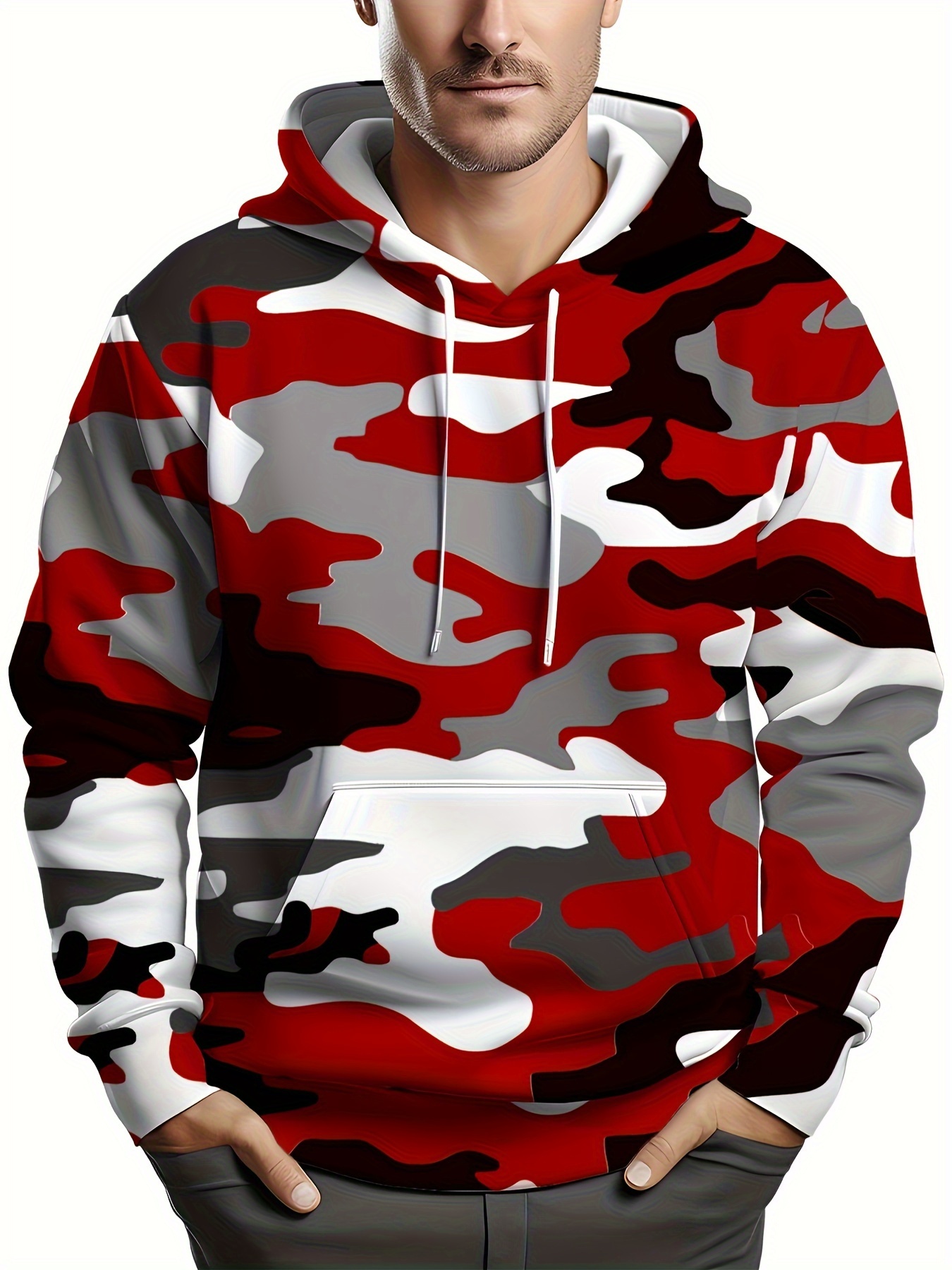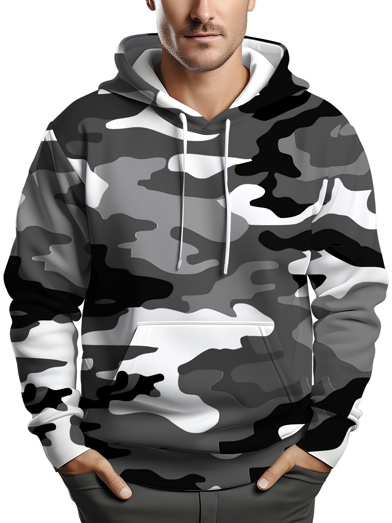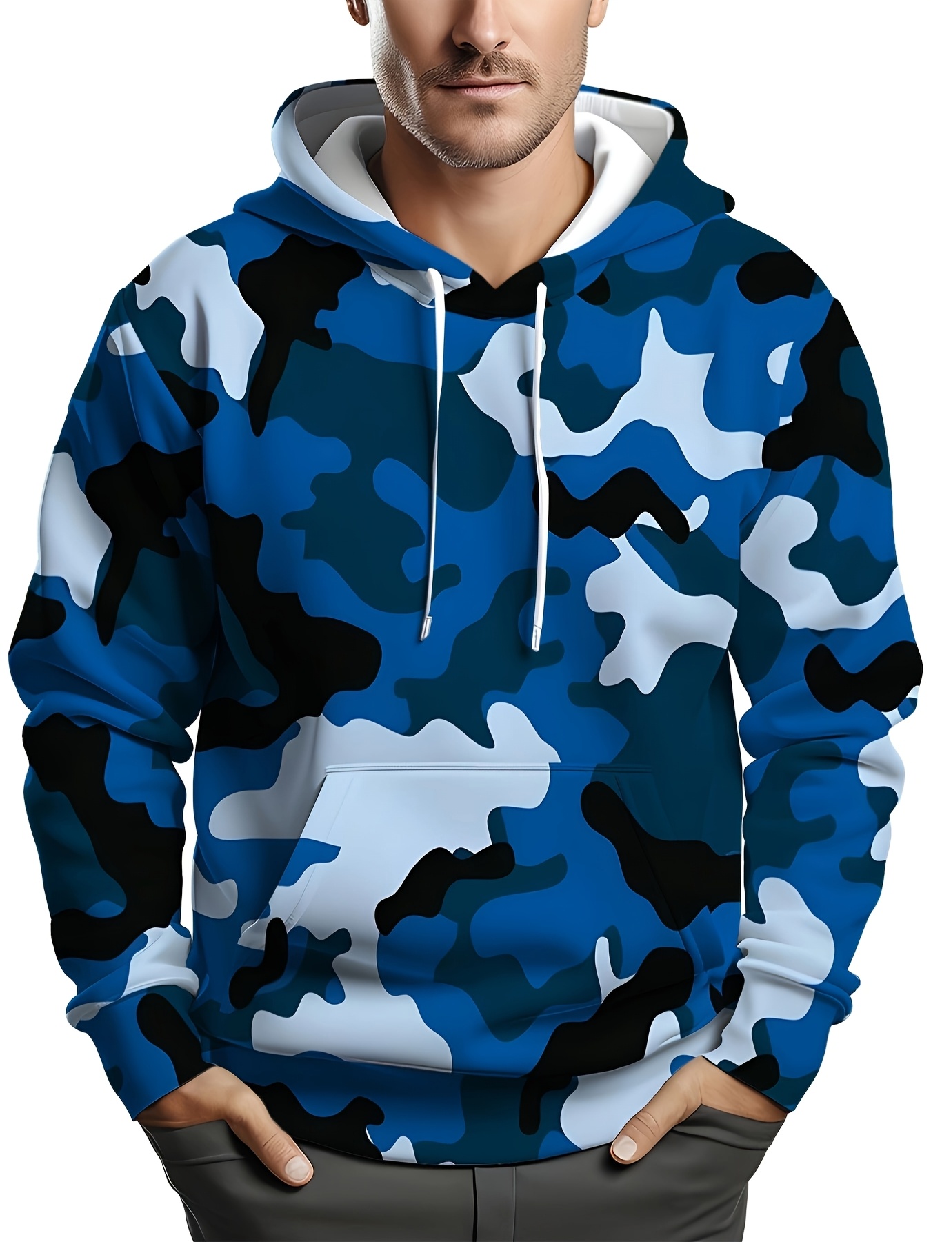 Erkaklar uchun katta o'lchamdagi kamuflyaj xuddi, cho'ziluvchan mato, mashinada yuvish mumkin.