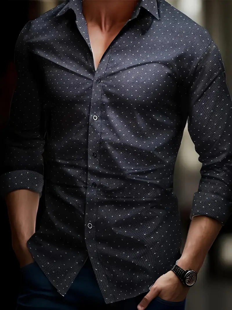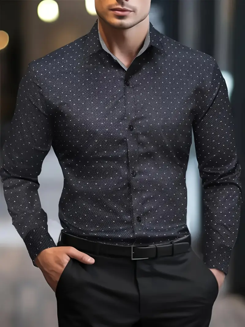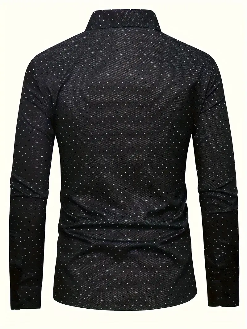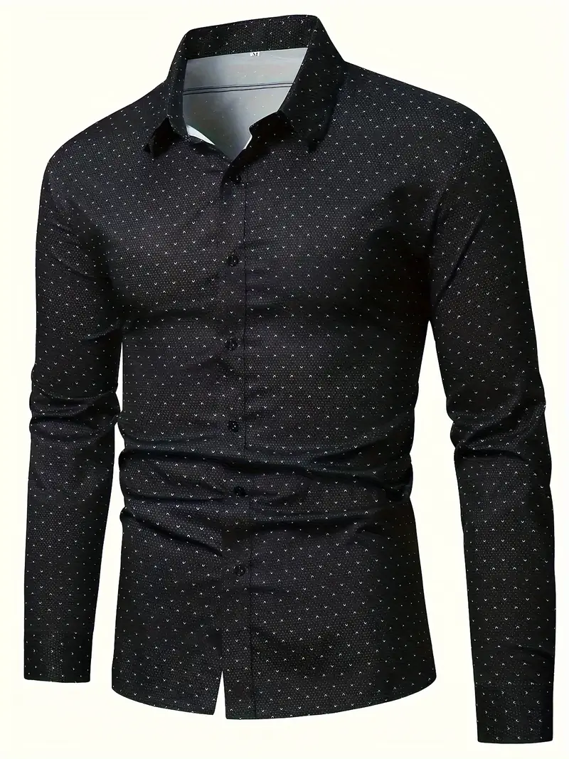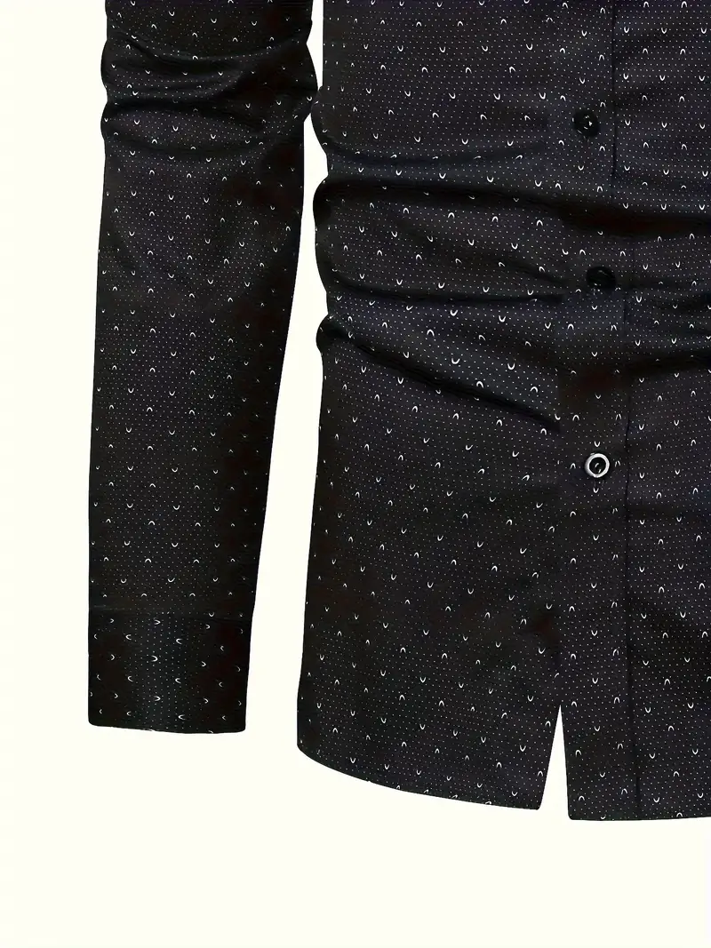 Erkaklar uchun plussiz tasodifiy tugmachali ko'ylak, oy printi bilan - polyester aralashmasi, bahor/kovak uchun cho'zilmaydigan mato