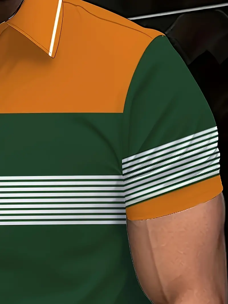 Erkaklar uchun plussiz golf ko'ylagi, tasodifiy chiziqli dizayn, qisqa yenglar, yoqa va nafas oladigan polyester aralashmasi. Mashinada yuvish mumkin, ko'k va kulrang parchalar dizayni.