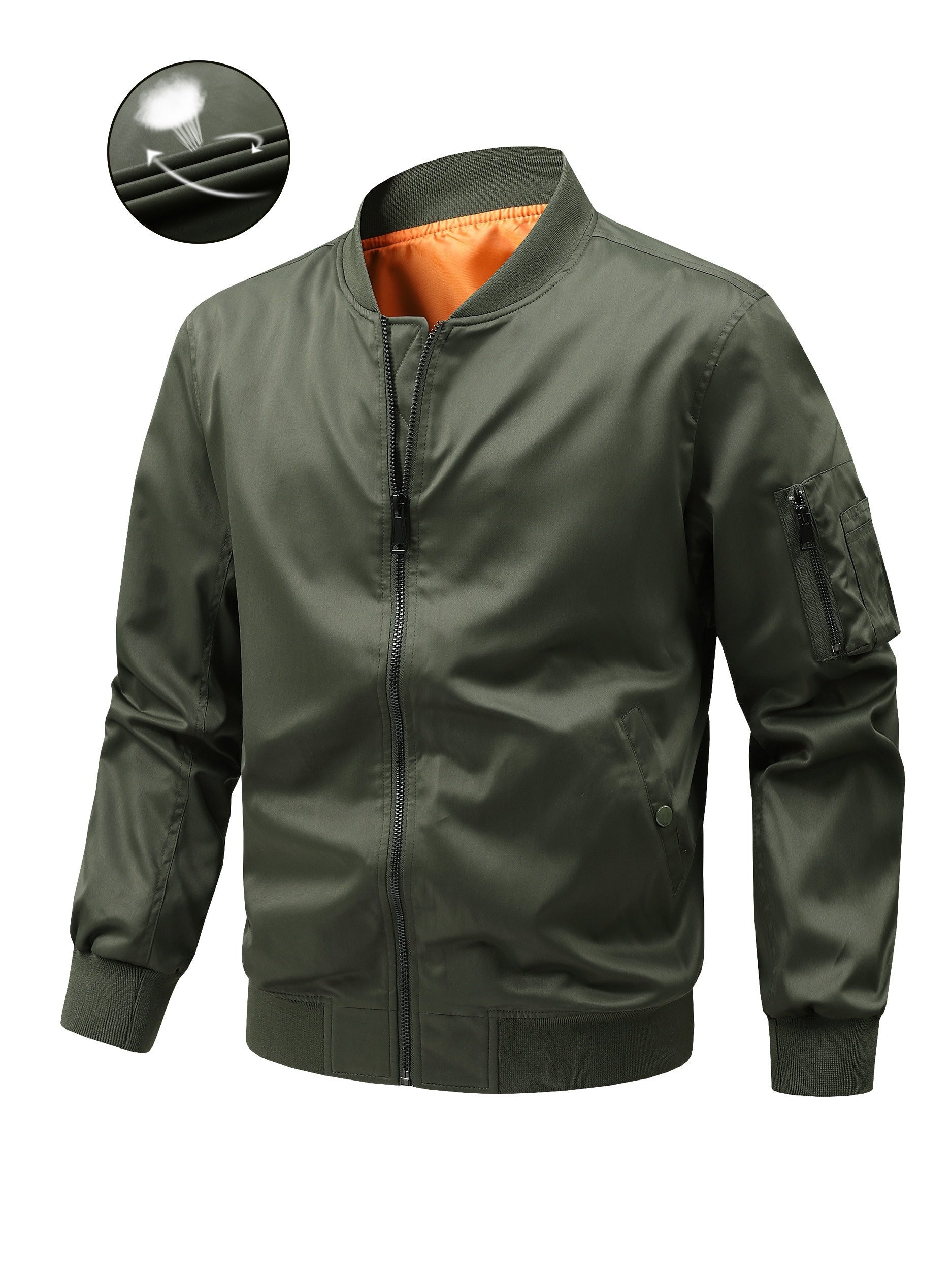 Erkaklar uchun plussiz shamol o'tkazmaydigan kurtka, zip yopilishi va beysbol yelkasiga ega