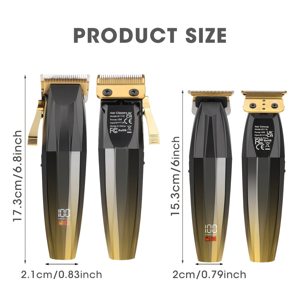 Erkaklar uchun professional soch kesish va trimmer to'plami, LCD displey bilan, USB orqali quvvatlanadigan 1800mAh lityum batareya, simsiz o'yma va tafsilotlar, sozlanadigan pichoqlar, qo'llanma taroqchilar - elektr