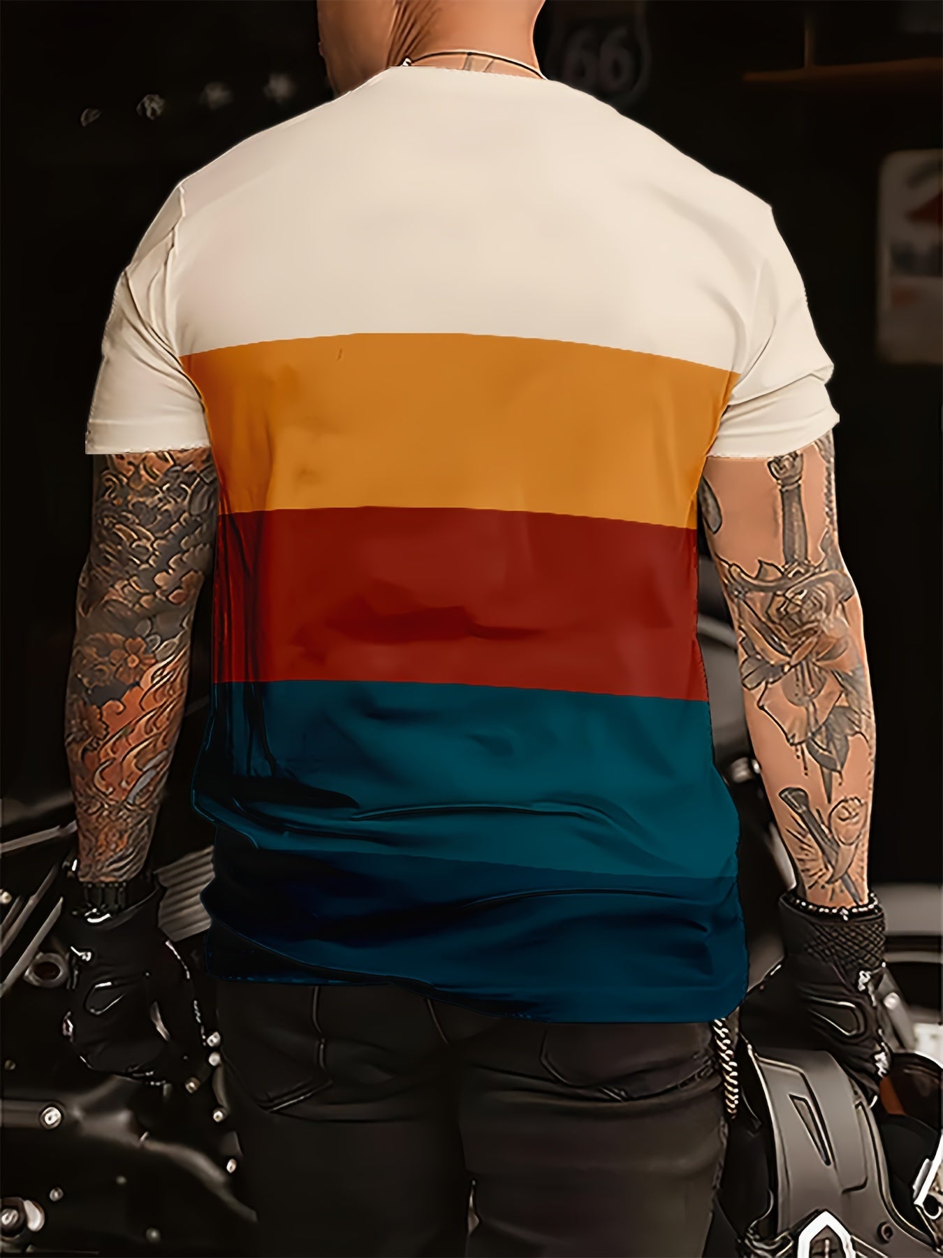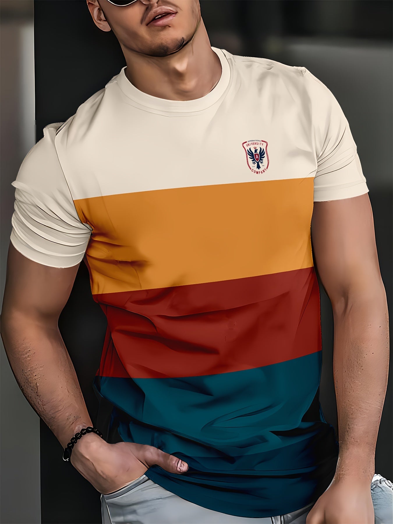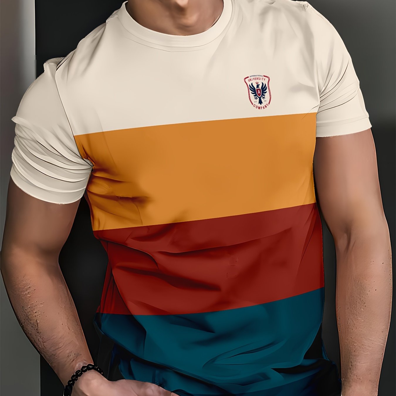 Erkaklar uchun qisqa yengli krujka bo'yinli futbolka, burgut emblemasi bosma va rangli blokirovka bilan, tasodifiy va zamonaviy sovg'a sifatida mukammal.