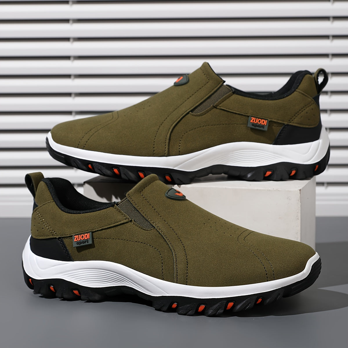 Erkaklar uchun Slipon Ease pastki balandlikdagi piyoda yurish botinkalari, tashqi faoliyatlar uchun sirpanmaydigan taglik, mikrofiber sintetik ustki, mato ichki qismi, EVA taglik | Silliq va Qattiq Slip-On Poyabzal