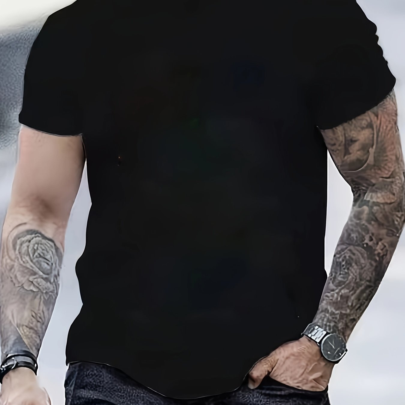 Erkaklar uchun bir rangli krujka yaka T-kofta - 95% polyester, 5% spandeks, oddiy kesim, kattalar uchun yozgi yuqori.