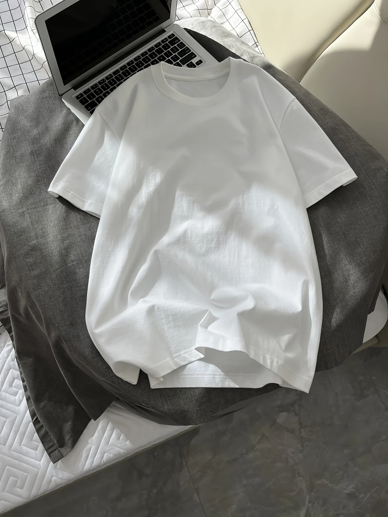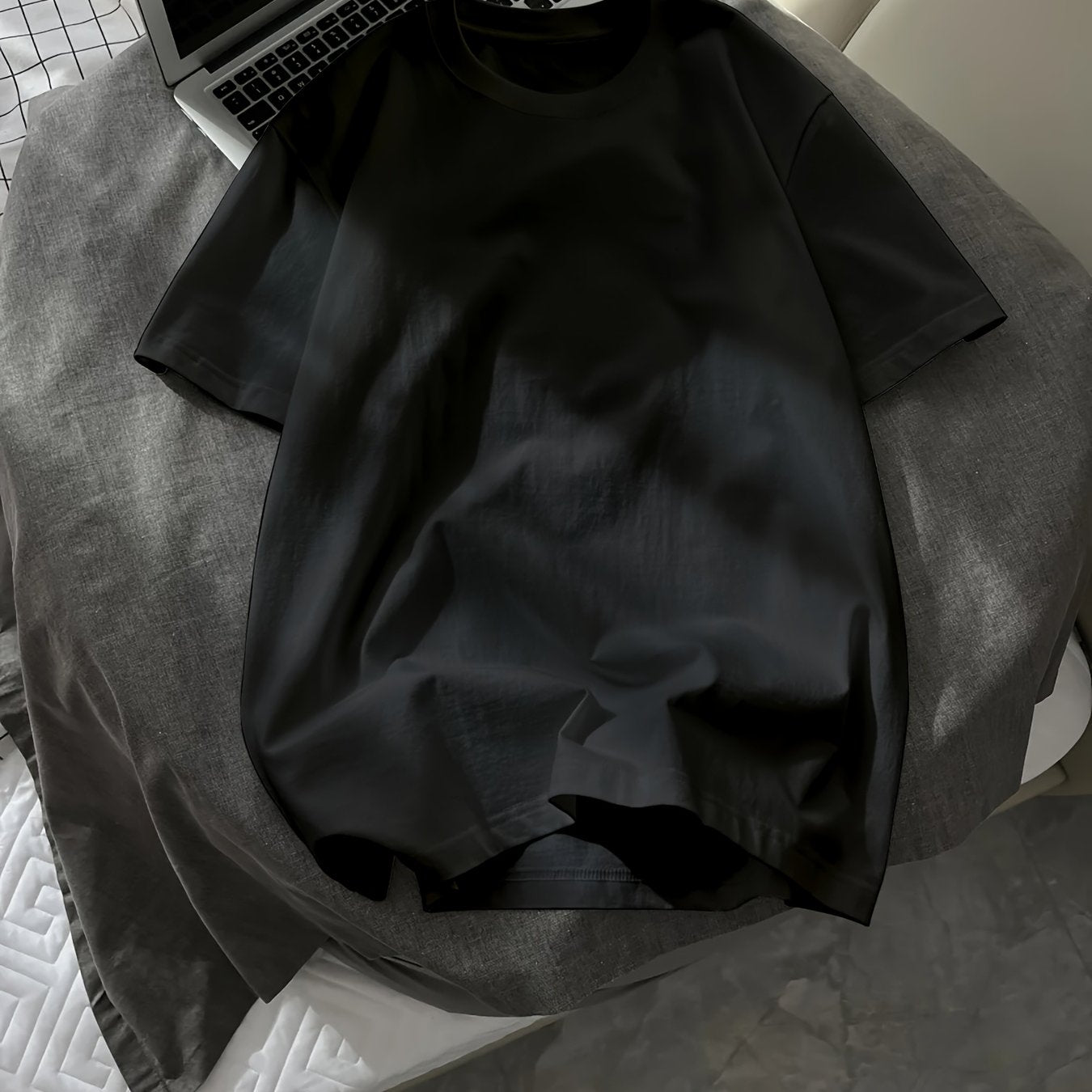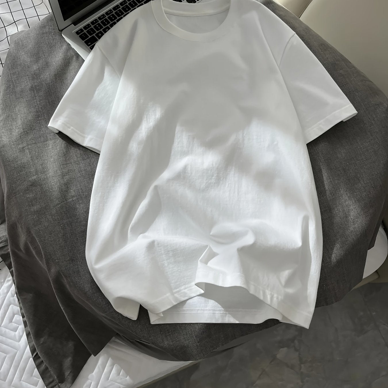 Yoz uchun erkaklar uchun bir rangli T-kofta, tasodifiy ko'cha uslubi
