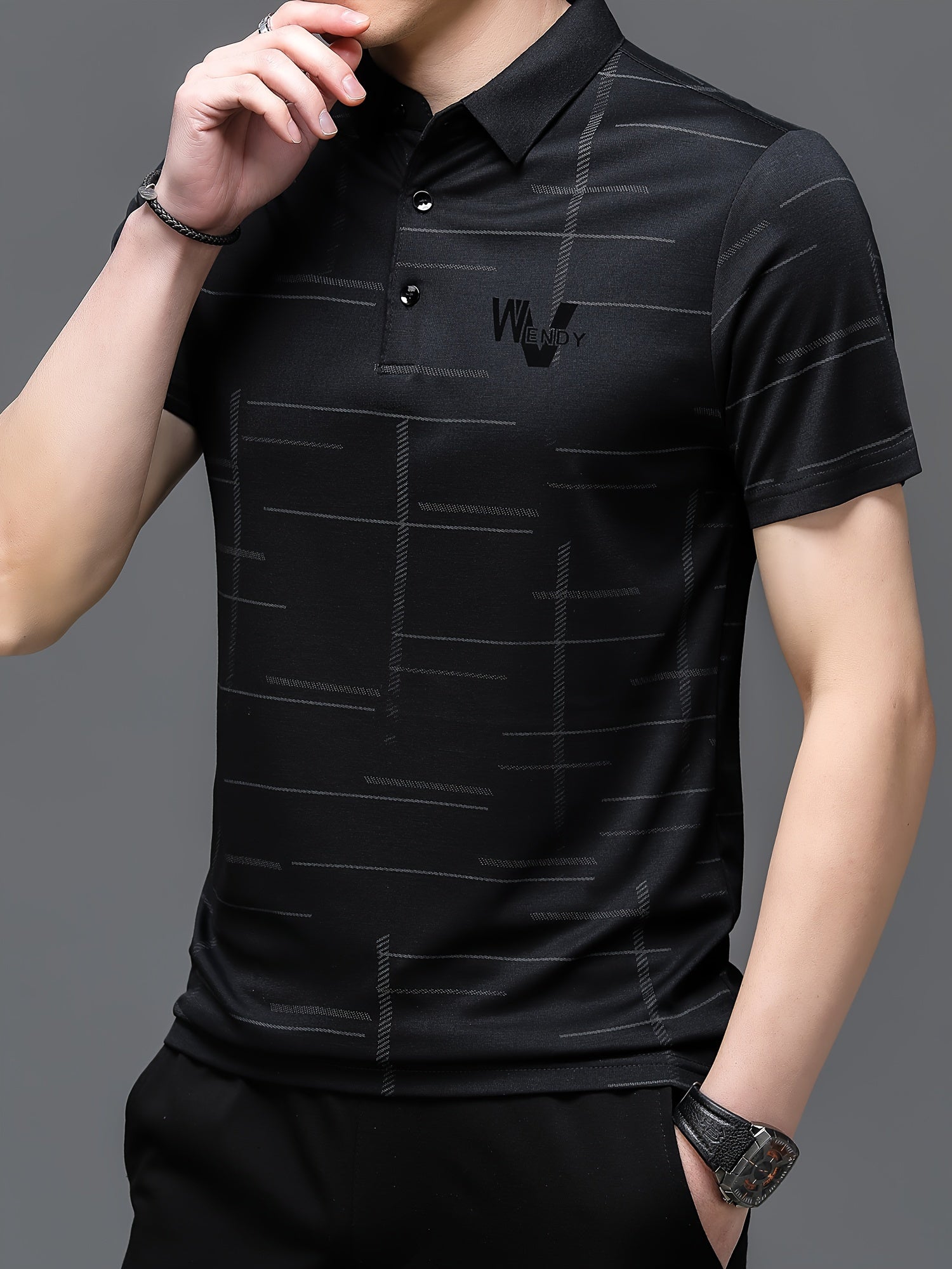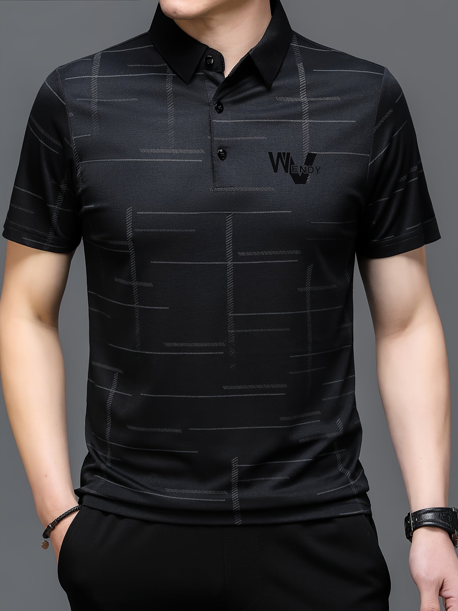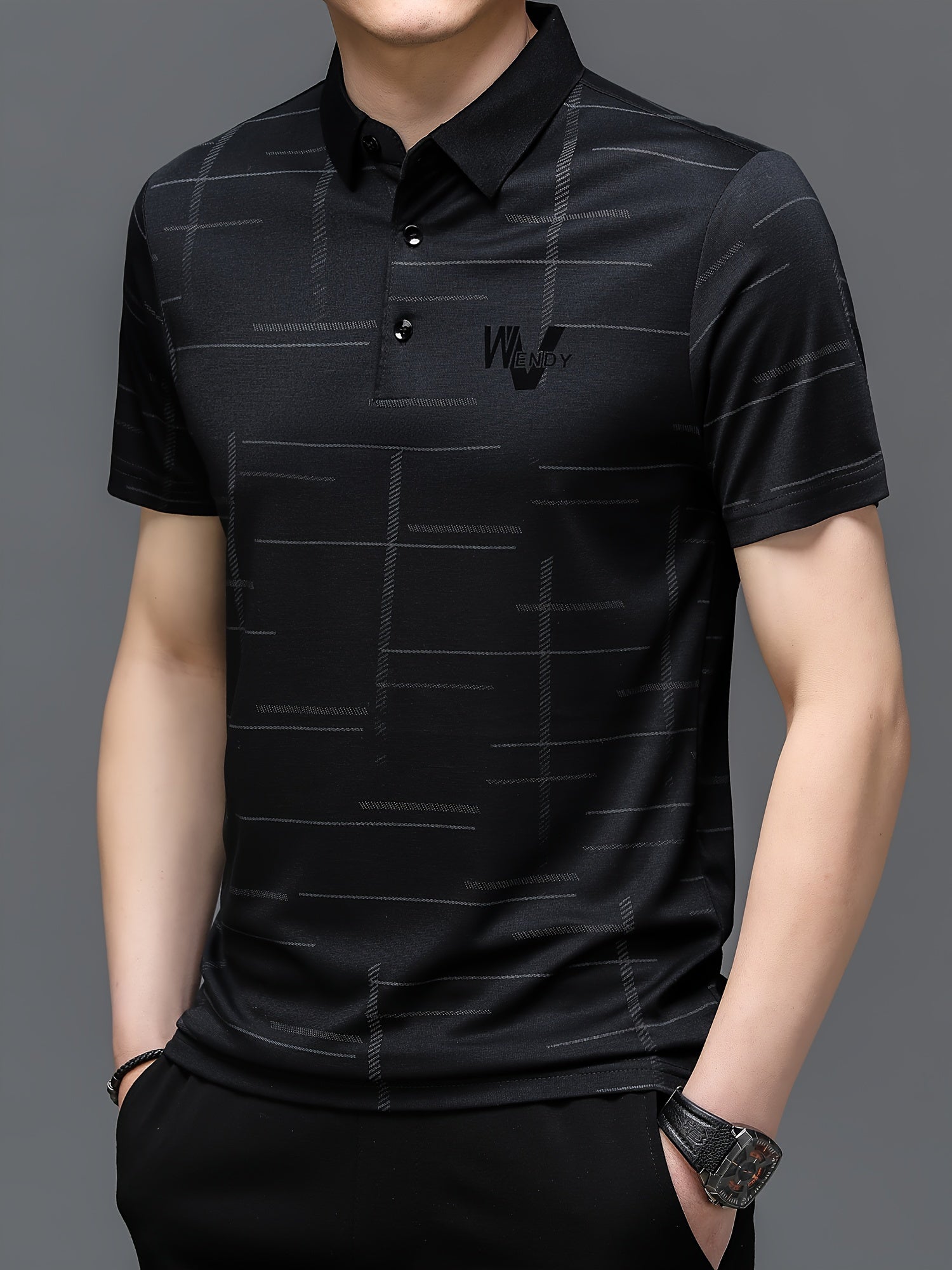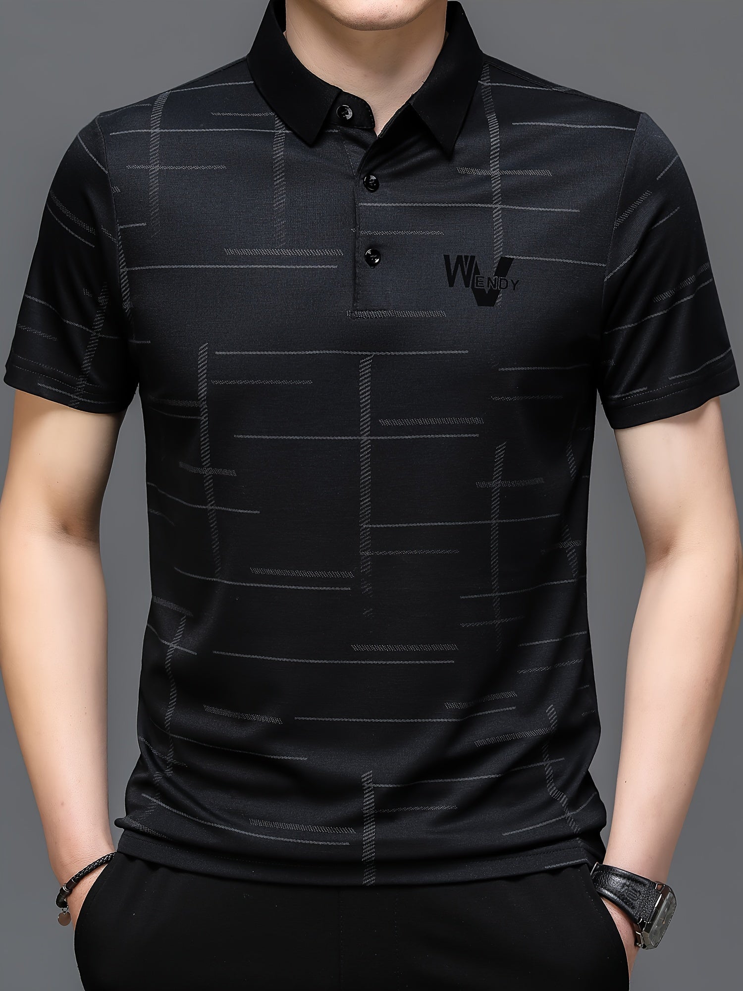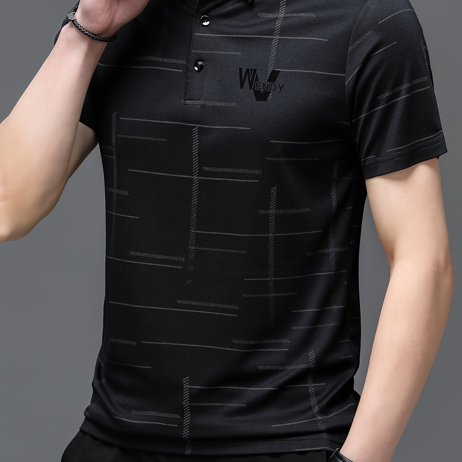 Erkaklar uchun sport ko'ylagi, notekis chiziqli naqsh, alfavit bosma, yengli, yozgi ochiq havoda faoliyatlar uchun mos.