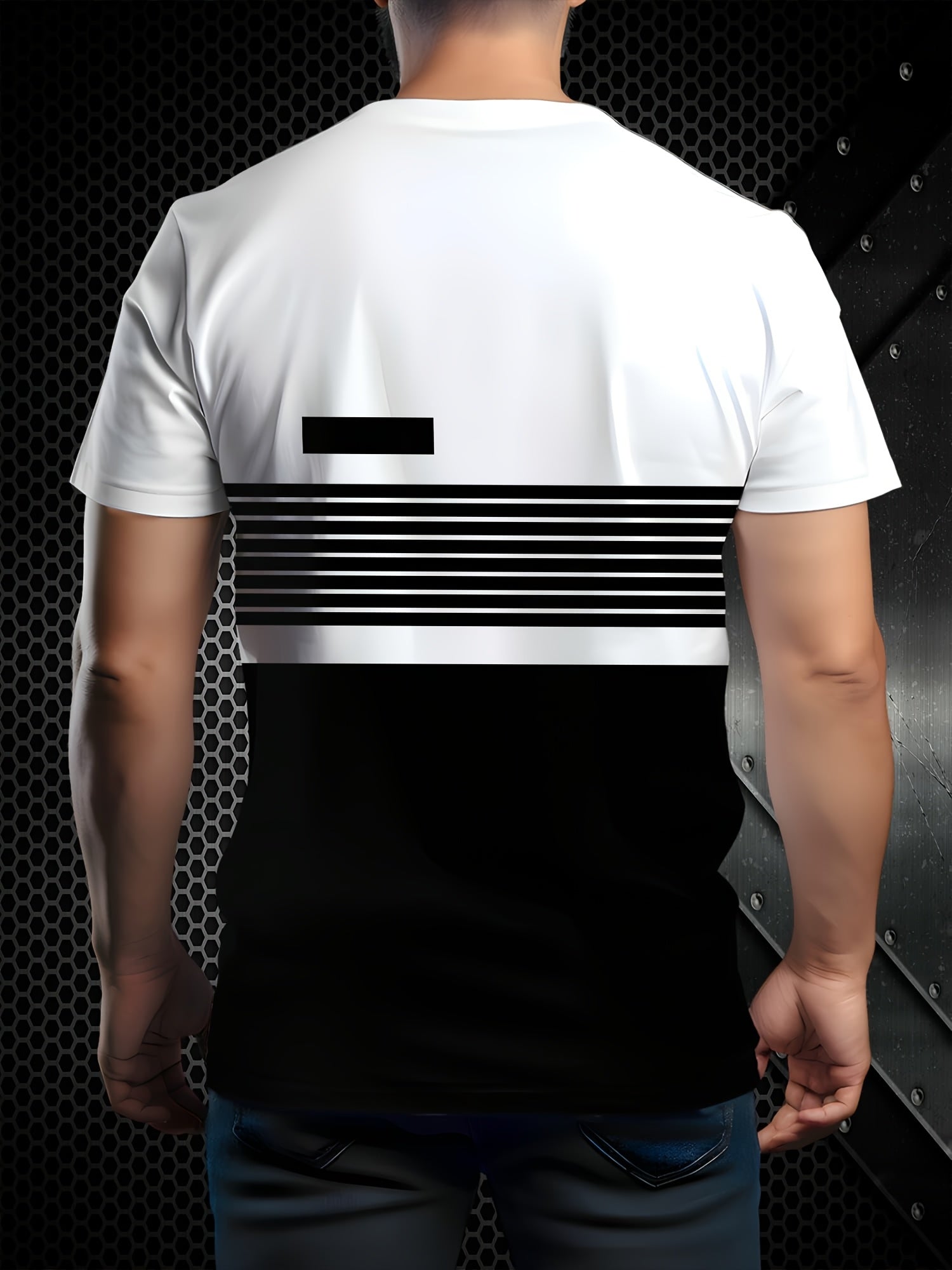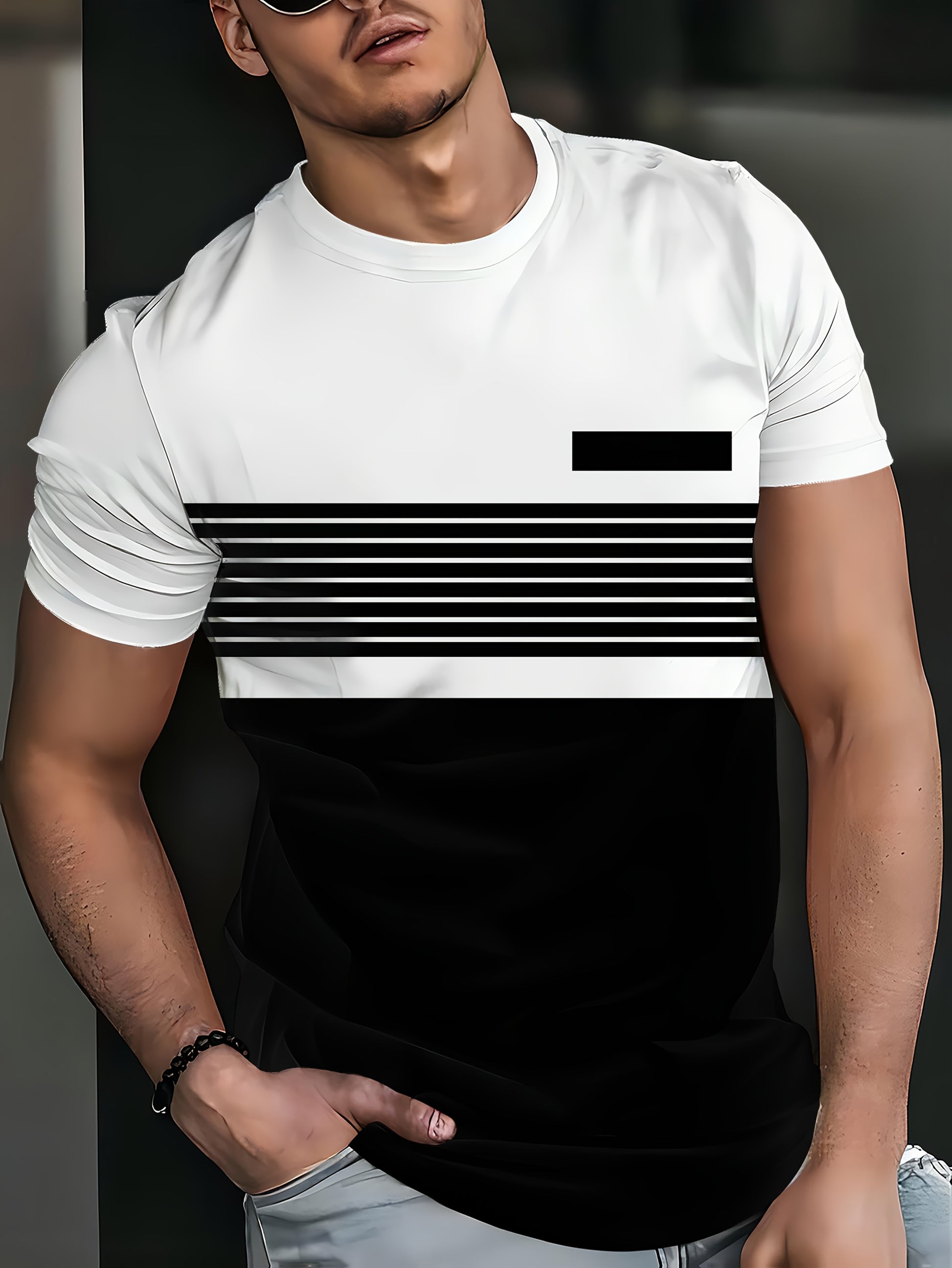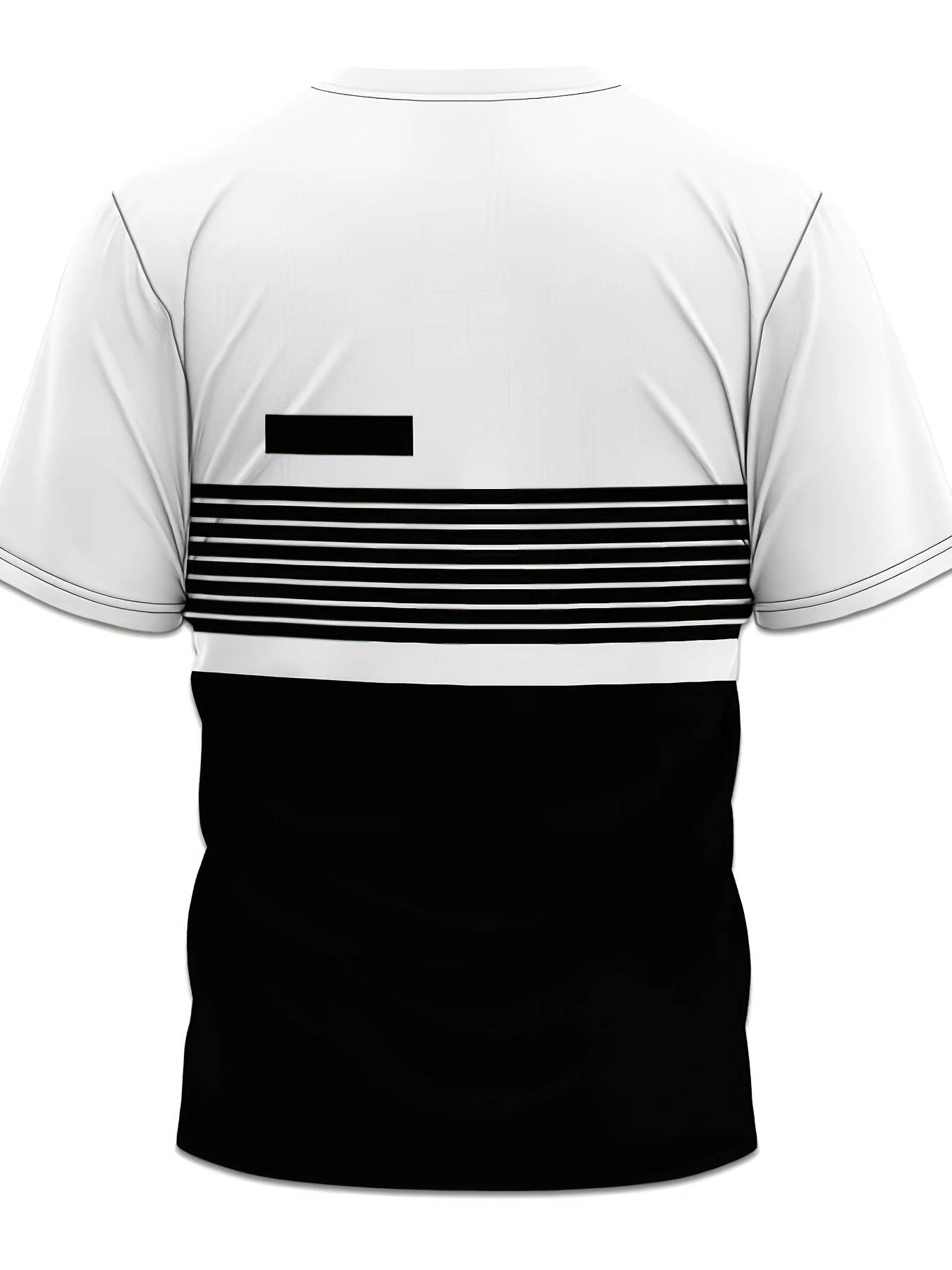 Erkaklar uchun chiziqli 3D bosma futbolka - nafas oladigan poli blend, yumshoq bo'yin, qisqa yengli yozgi yuqori.