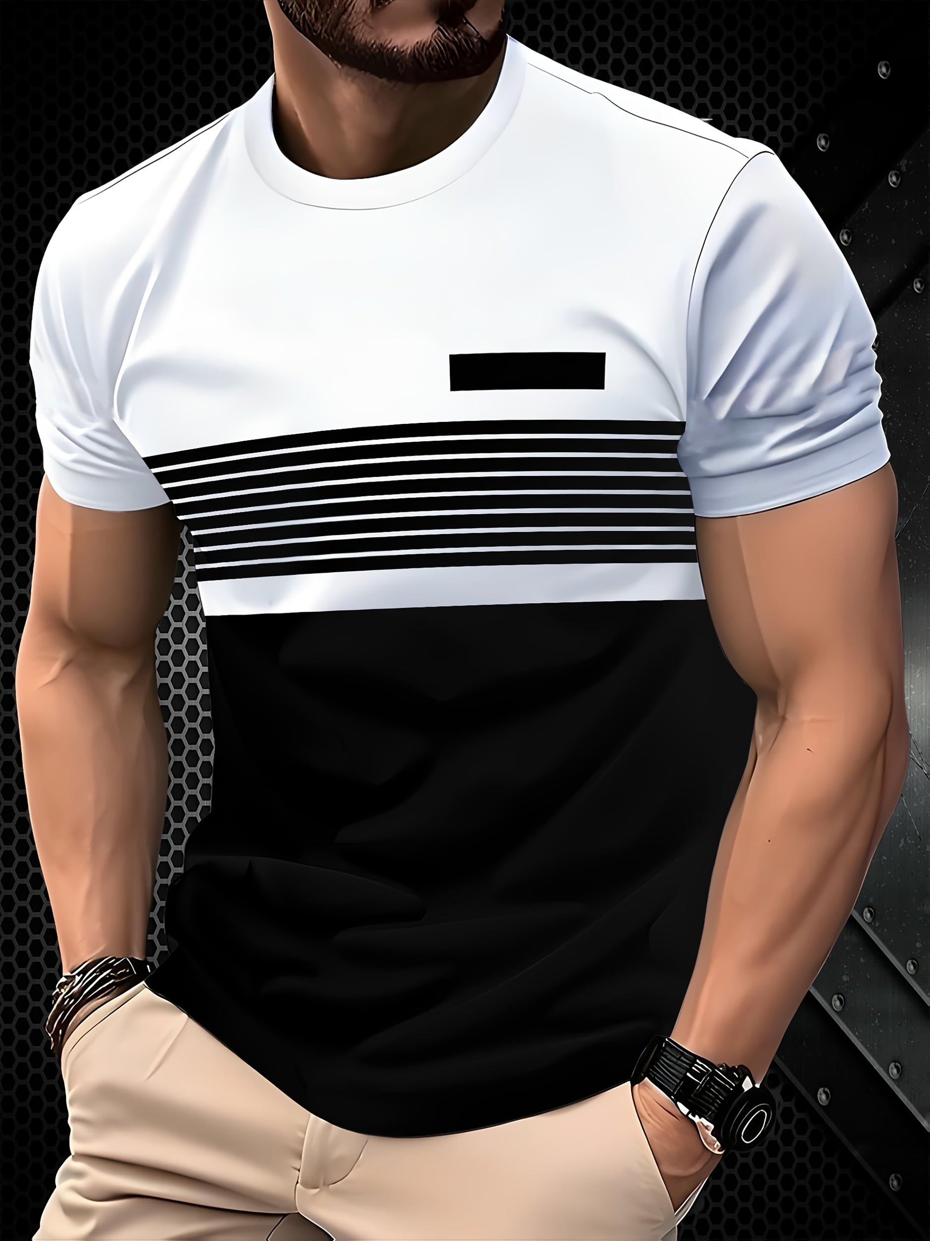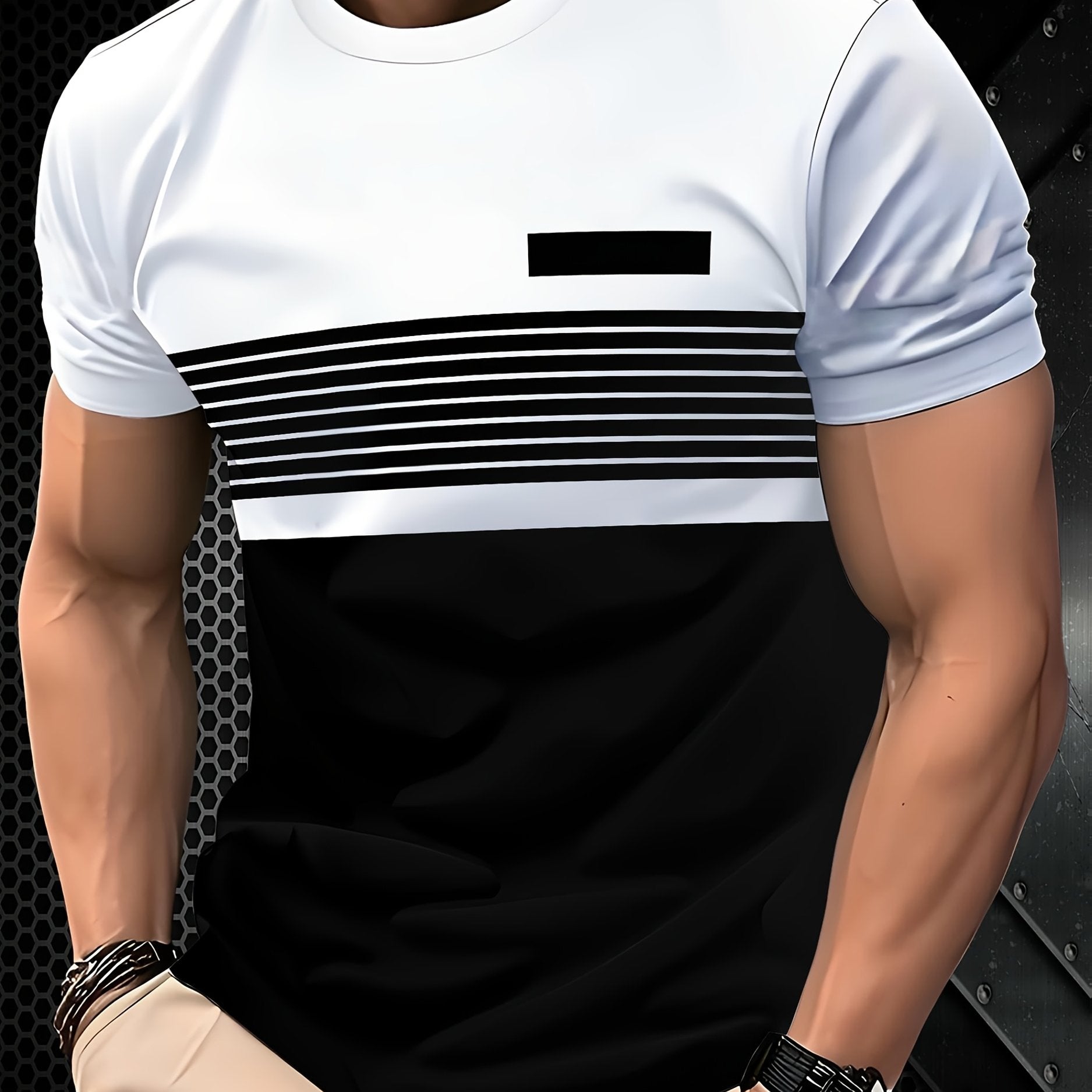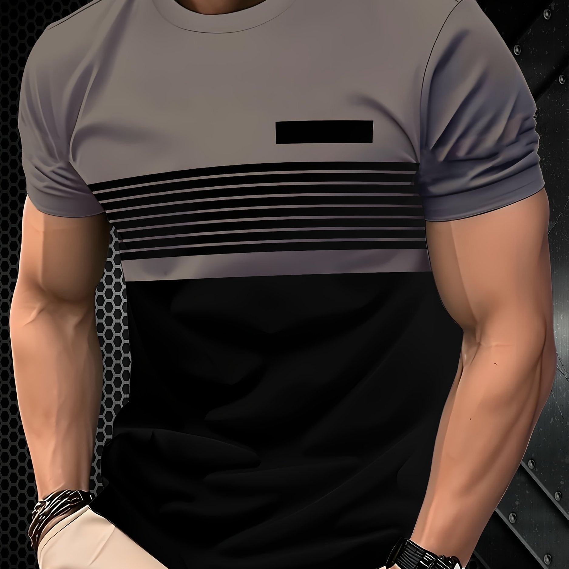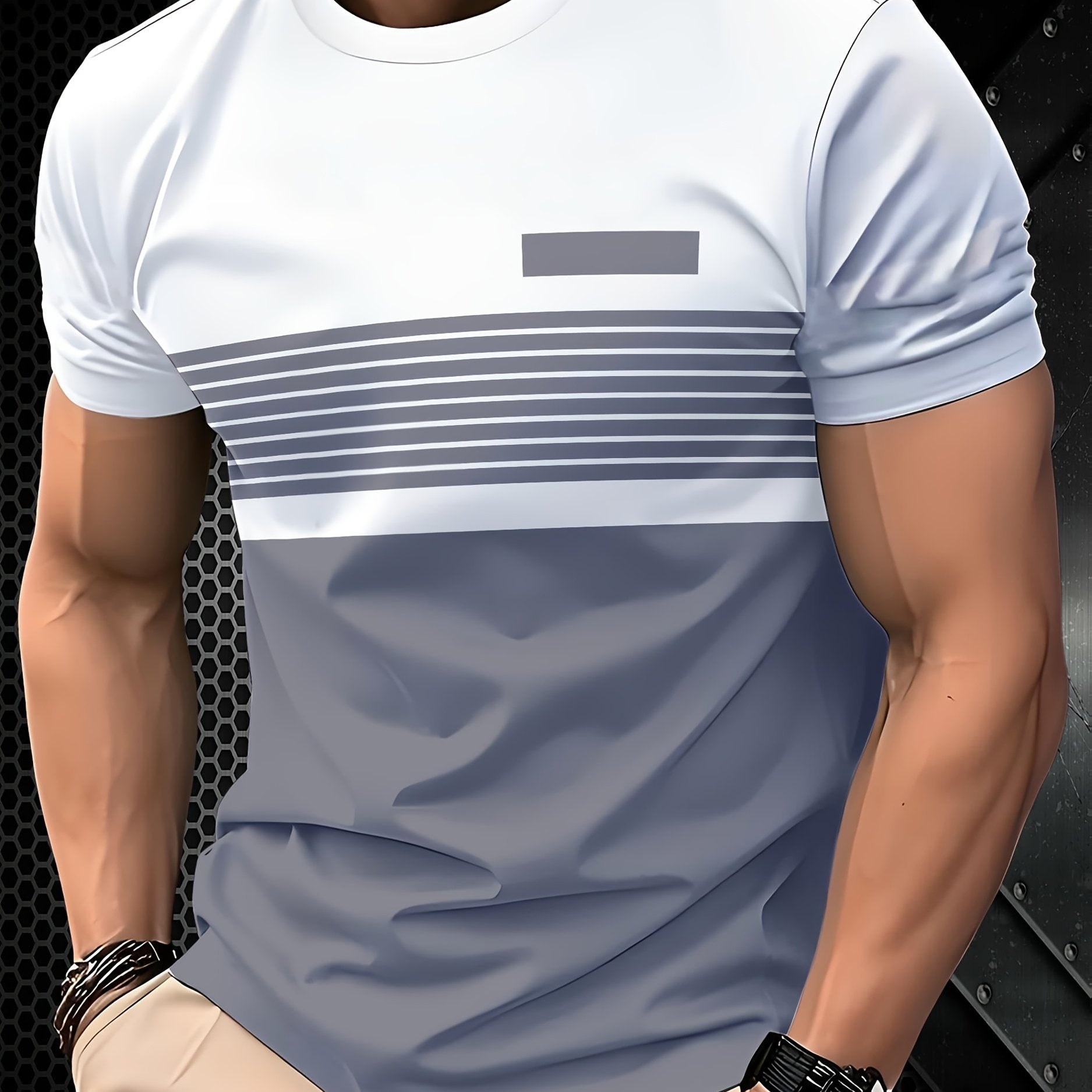Erkaklar uchun chiziqli 3D bosma futbolka - nafas oladigan poli blend, yumshoq bo'yin, qisqa yengli yozgi yuqori.