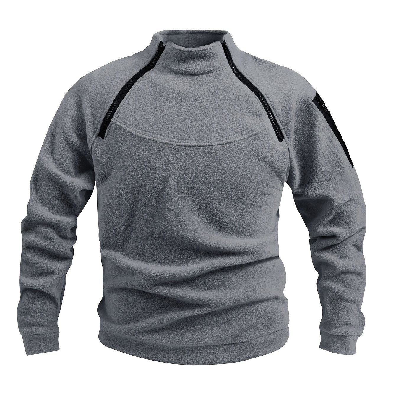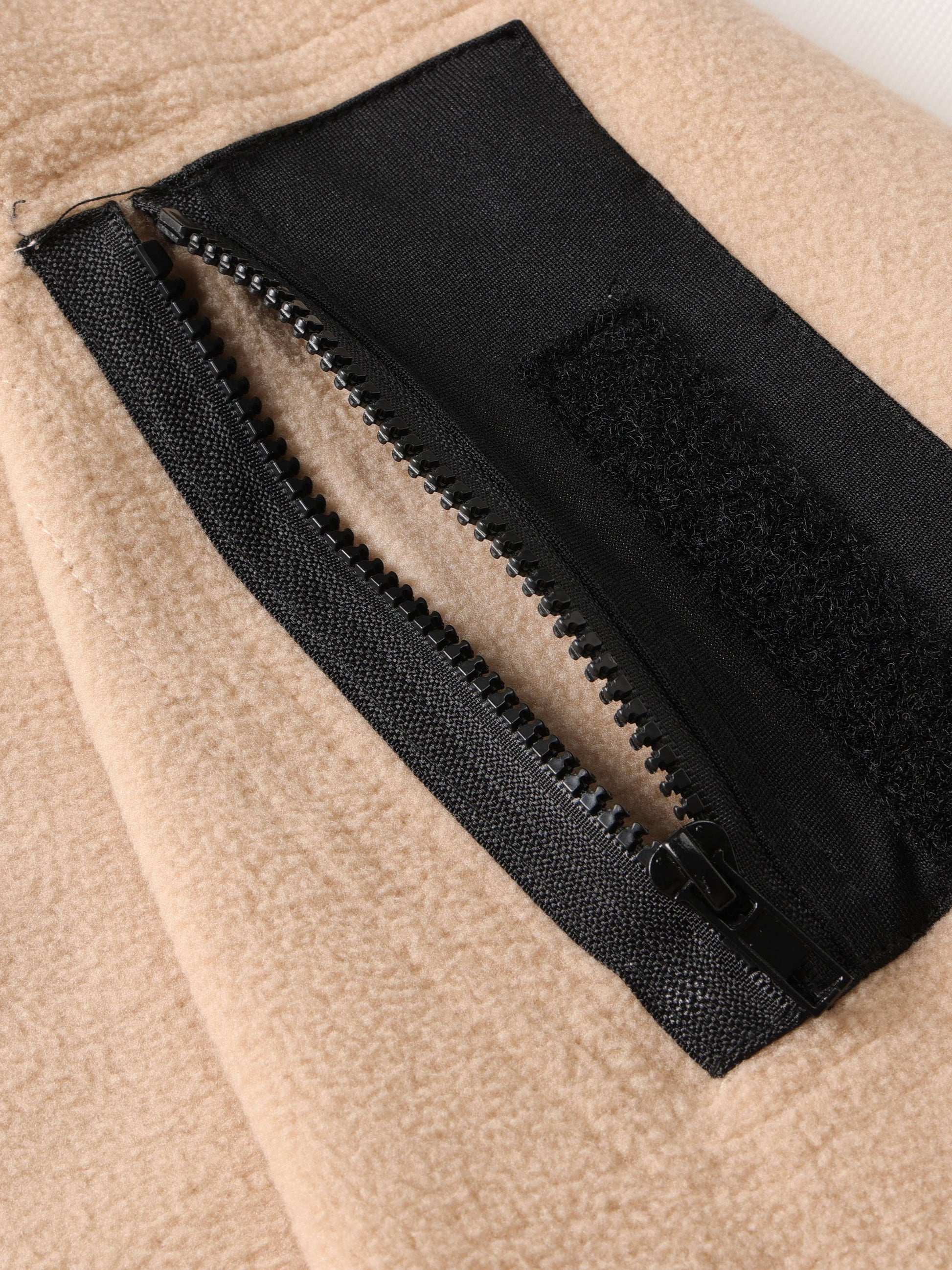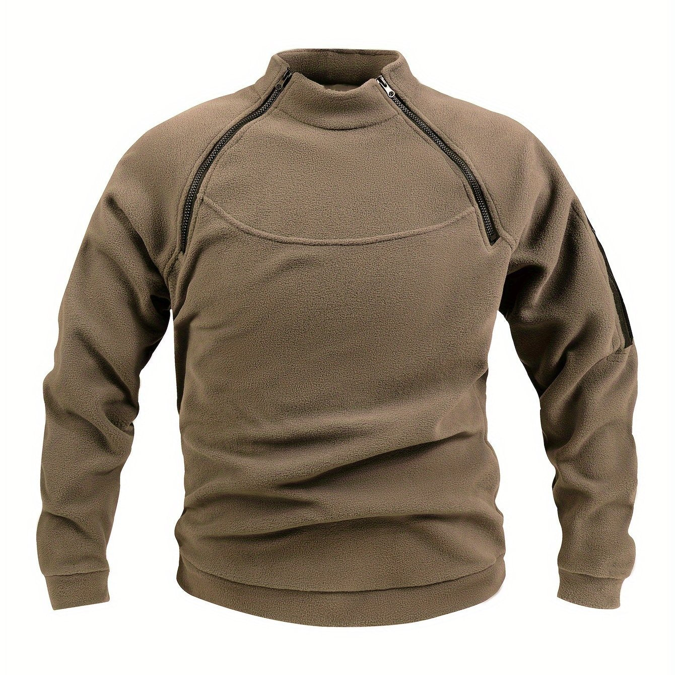 Bej rangli qora aksentli erkaklar taktik flis sviter - Qish/fasl ochiq havoda faoliyatlar uchun iliq, nafas oladigan, mustahkam, fermuarsiz dizayn. Polyesterdan tayyorlangan, mashinada yuvish mumkin.