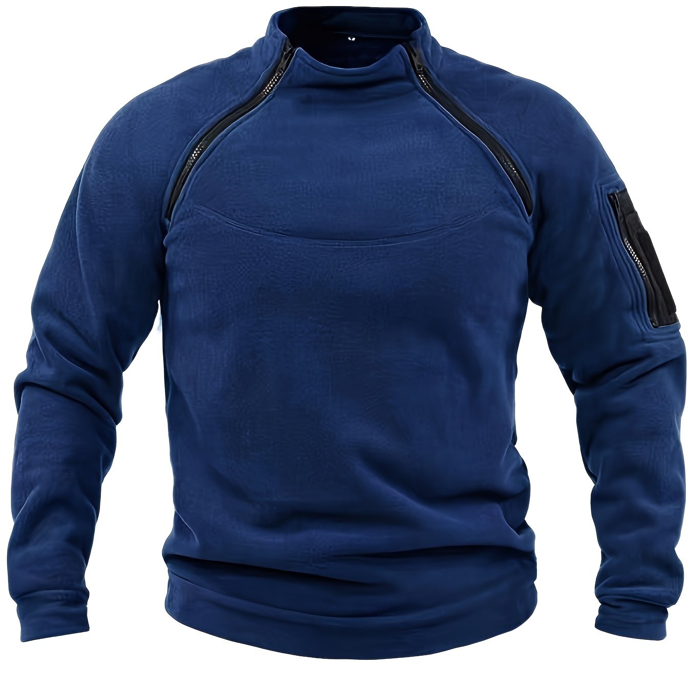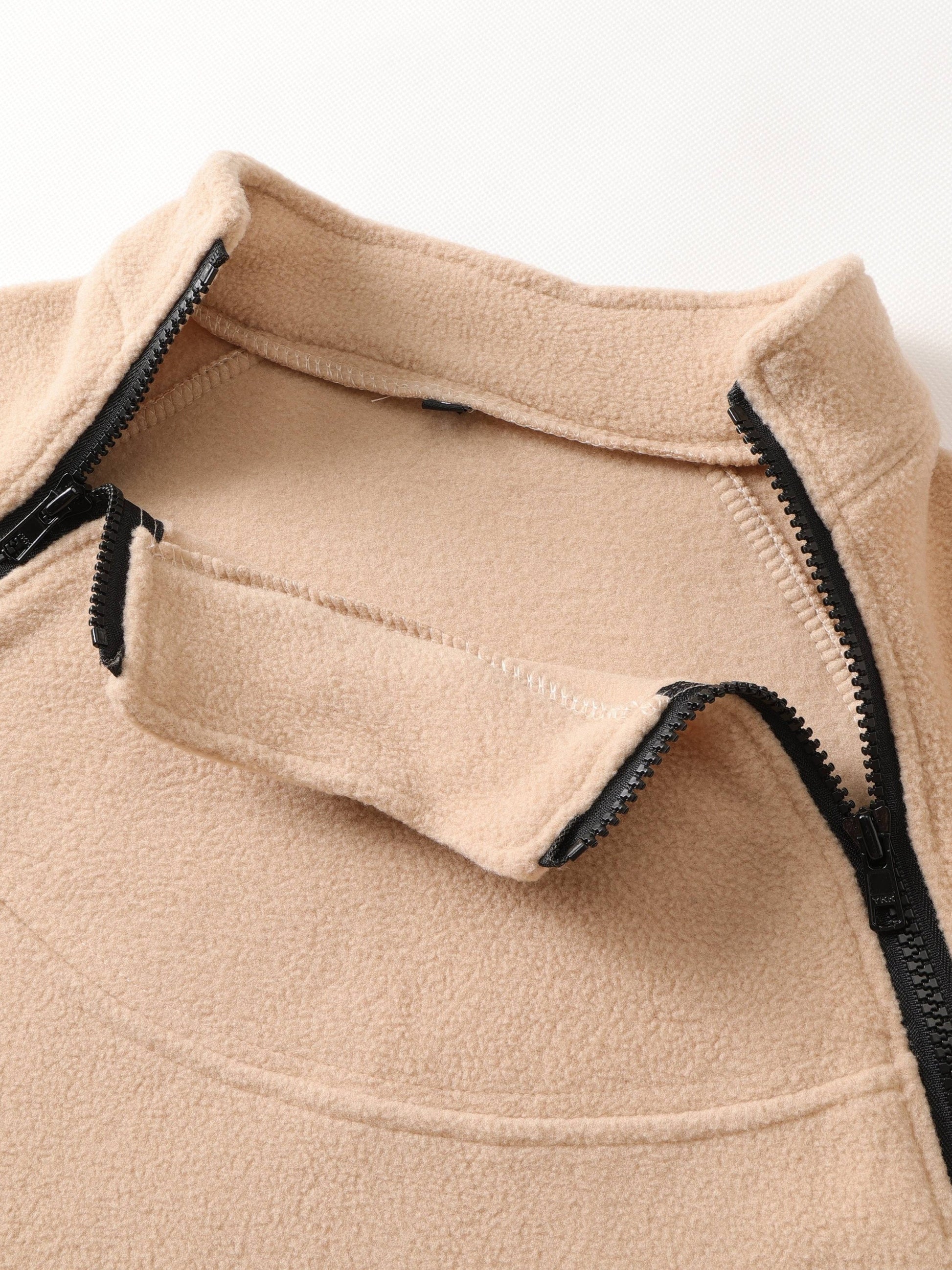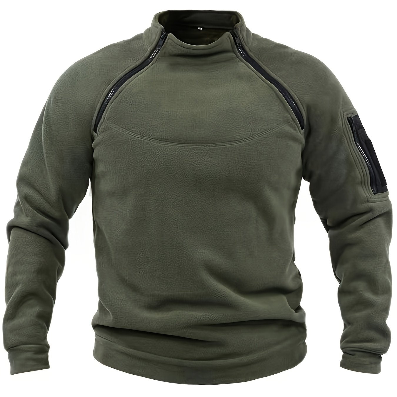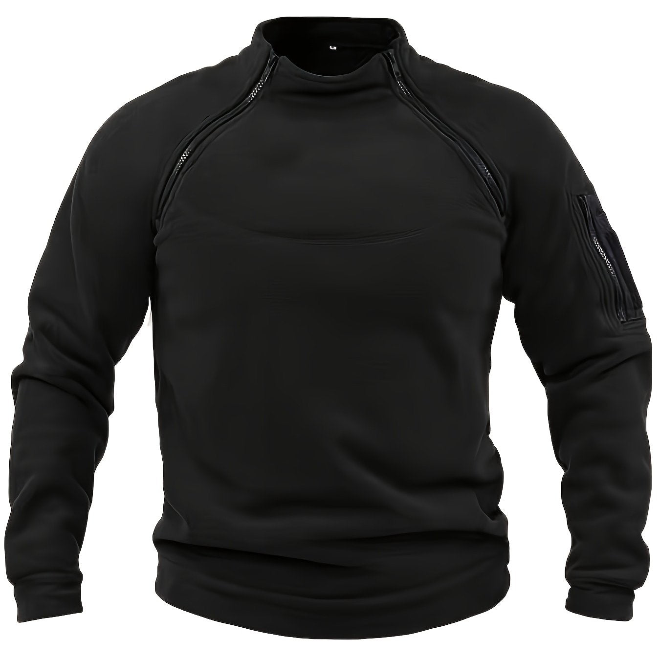 Bej rangli qora aksentli erkaklar taktik flis sviter - Qish/fasl ochiq havoda faoliyatlar uchun iliq, nafas oladigan, mustahkam, fermuarsiz dizayn. Polyesterdan tayyorlangan, mashinada yuvish mumkin.