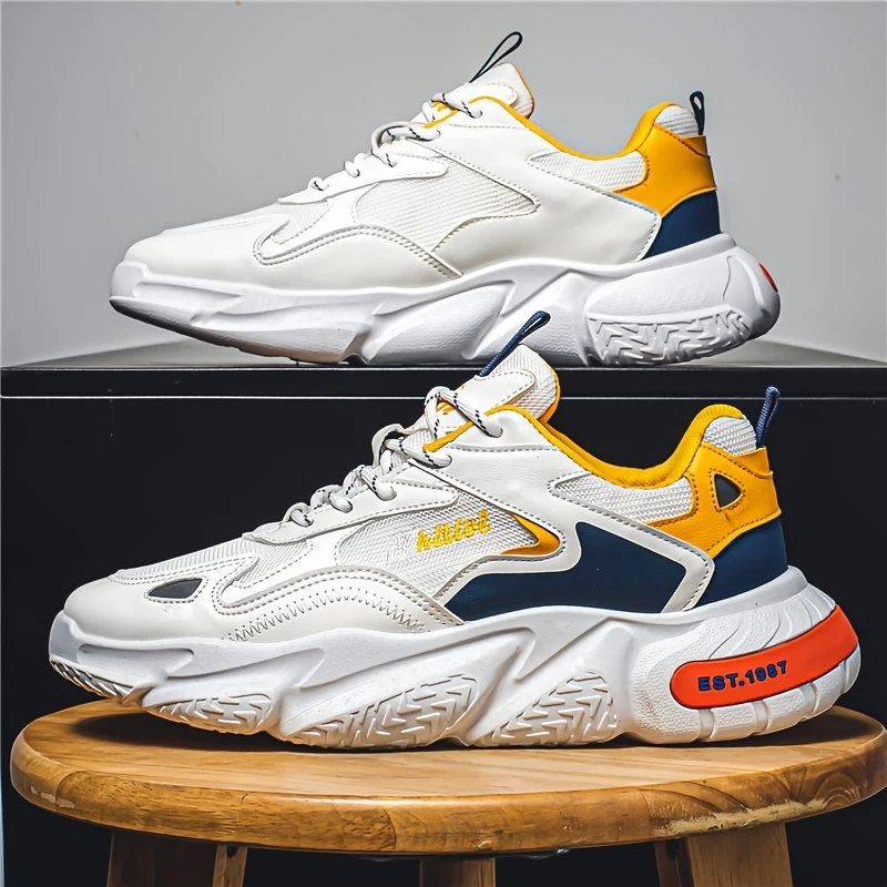 Erkaklar uchun zamonaviy qalin poyabzal, yumshoq ko'pik taglik, sirpanmaydigan bog'ichli dizayn va ochiq havoda faoliyatlar uchun mustahkam qurilish.