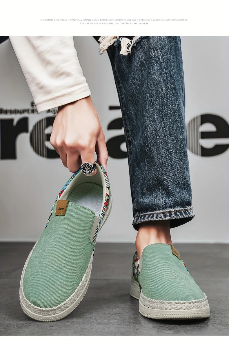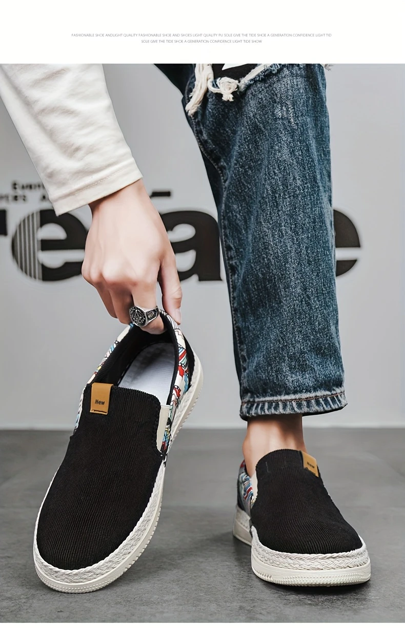 Erkaklar uchun ochiq havoda faoliyatlar uchun mo'ljallangan zamonaviy slip-on poyabzal, qulay sirpanmaydigan taglik bilan.