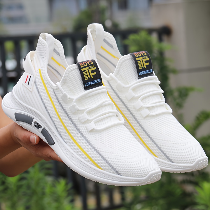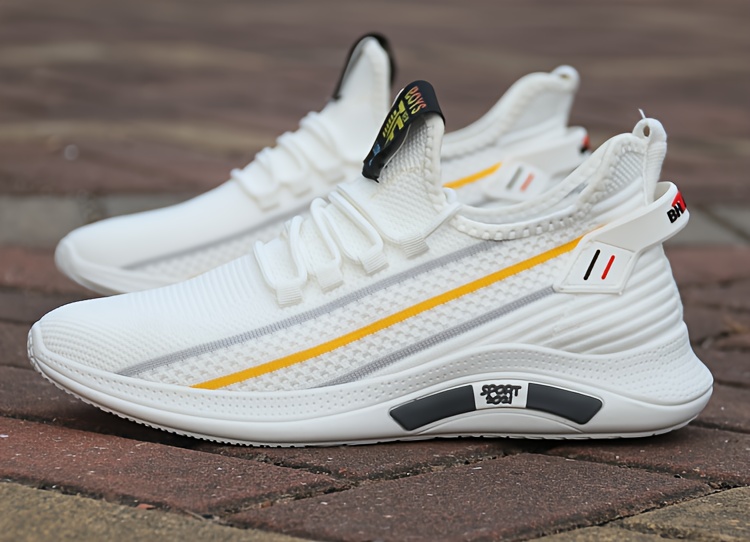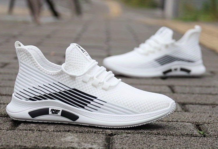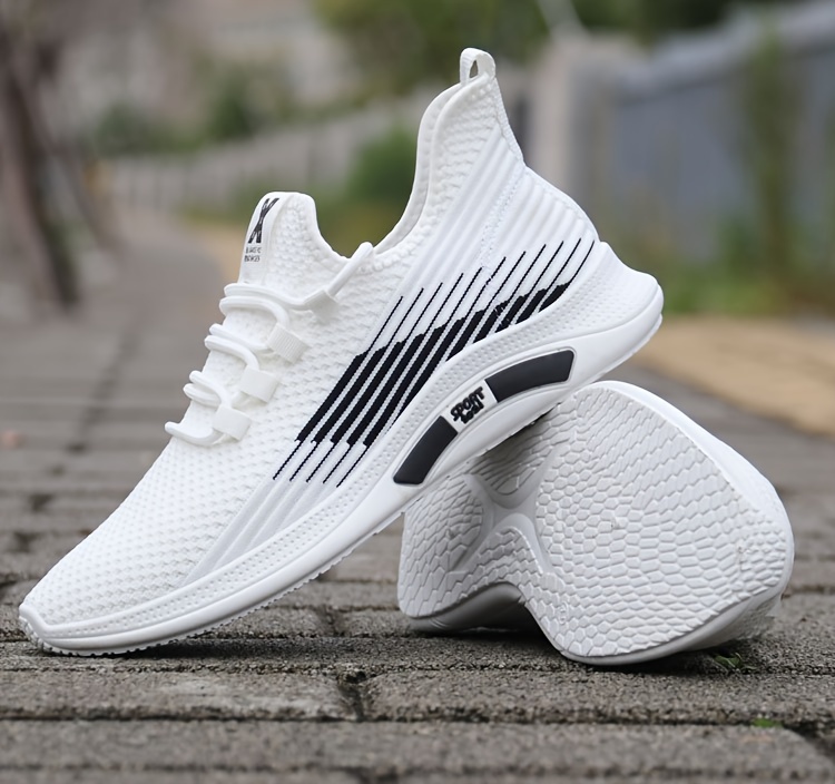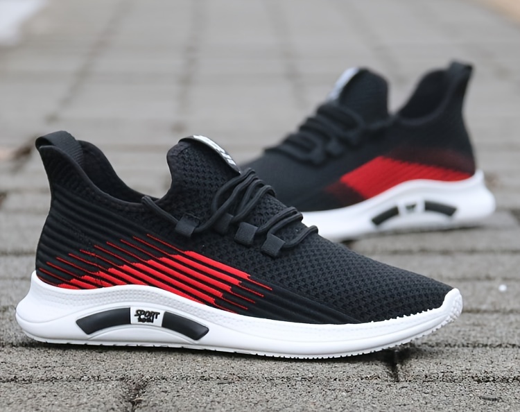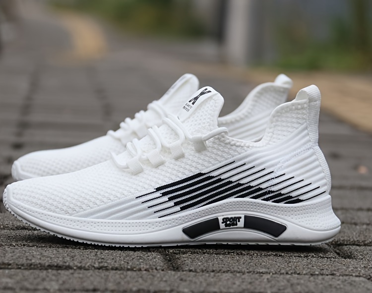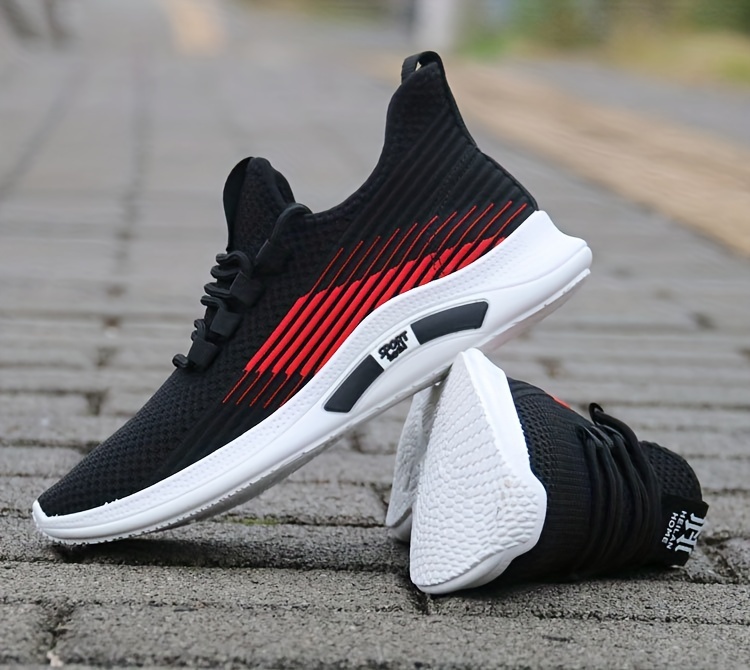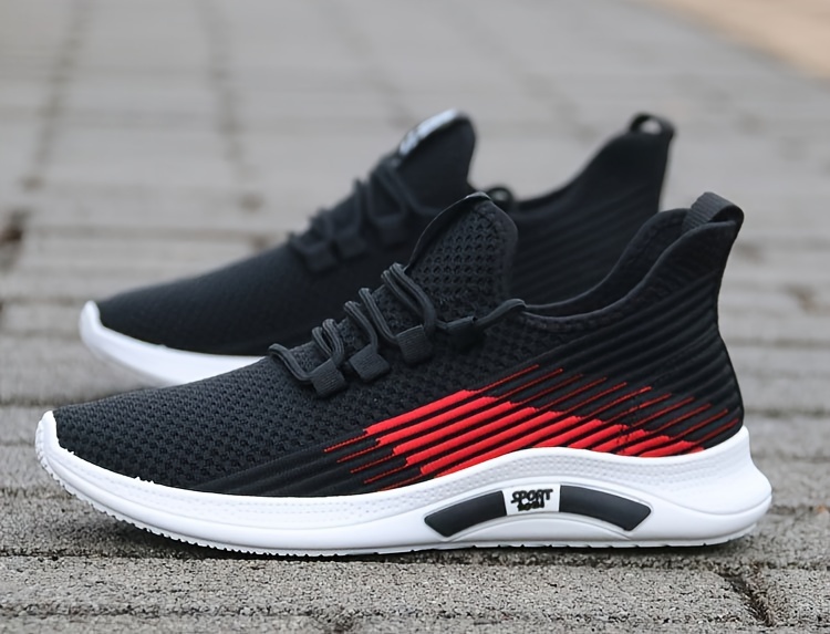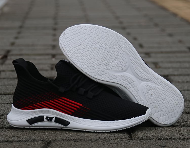 Erkaklar uchun ochiq havoda faoliyatlar uchun to'qilgan trikotaj krossovkalar, sirpanmaydigan taglik va bog'ichli dizayn bilan.