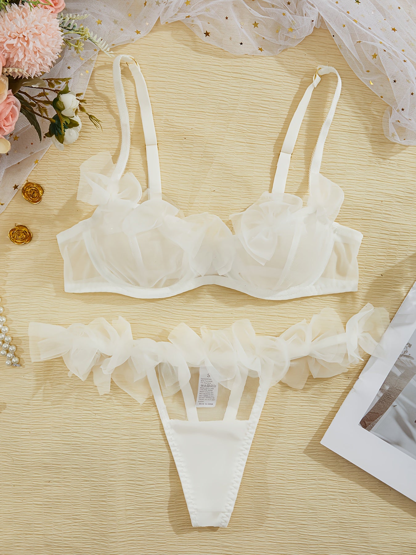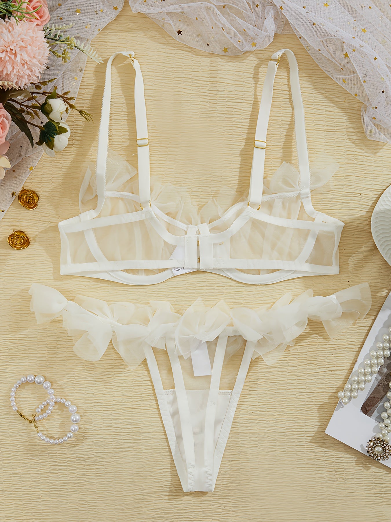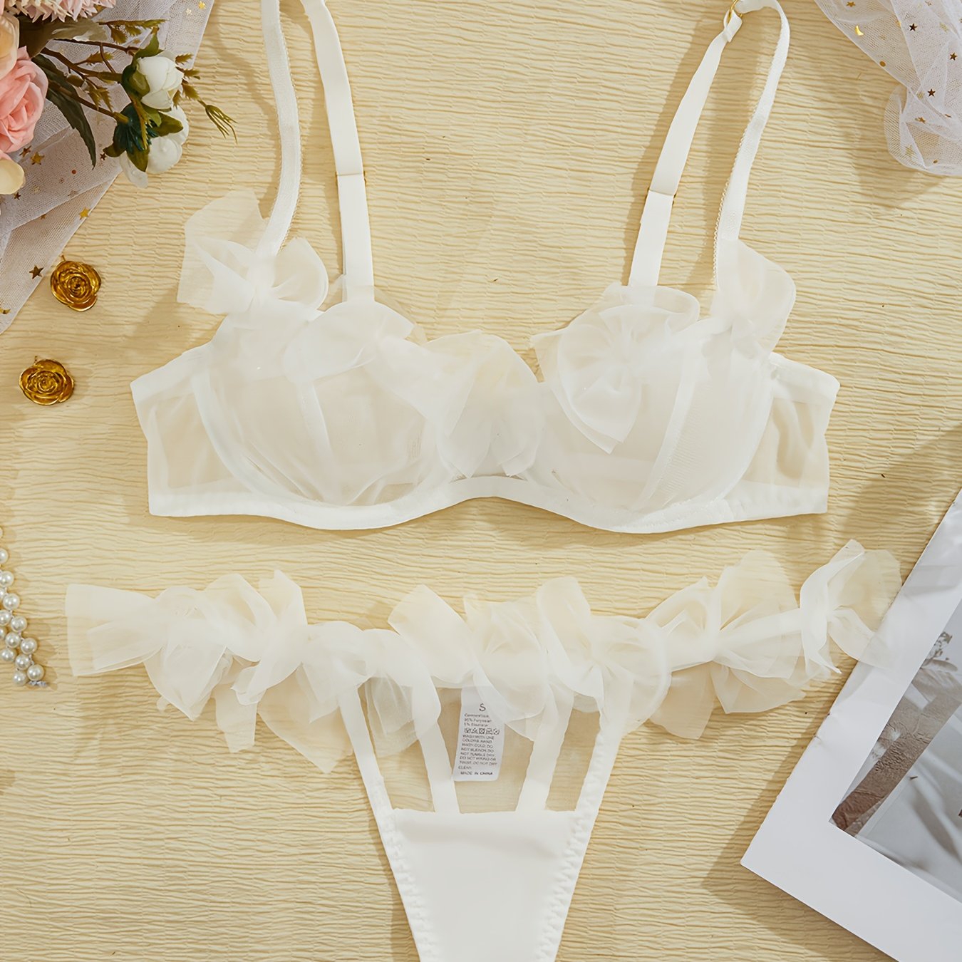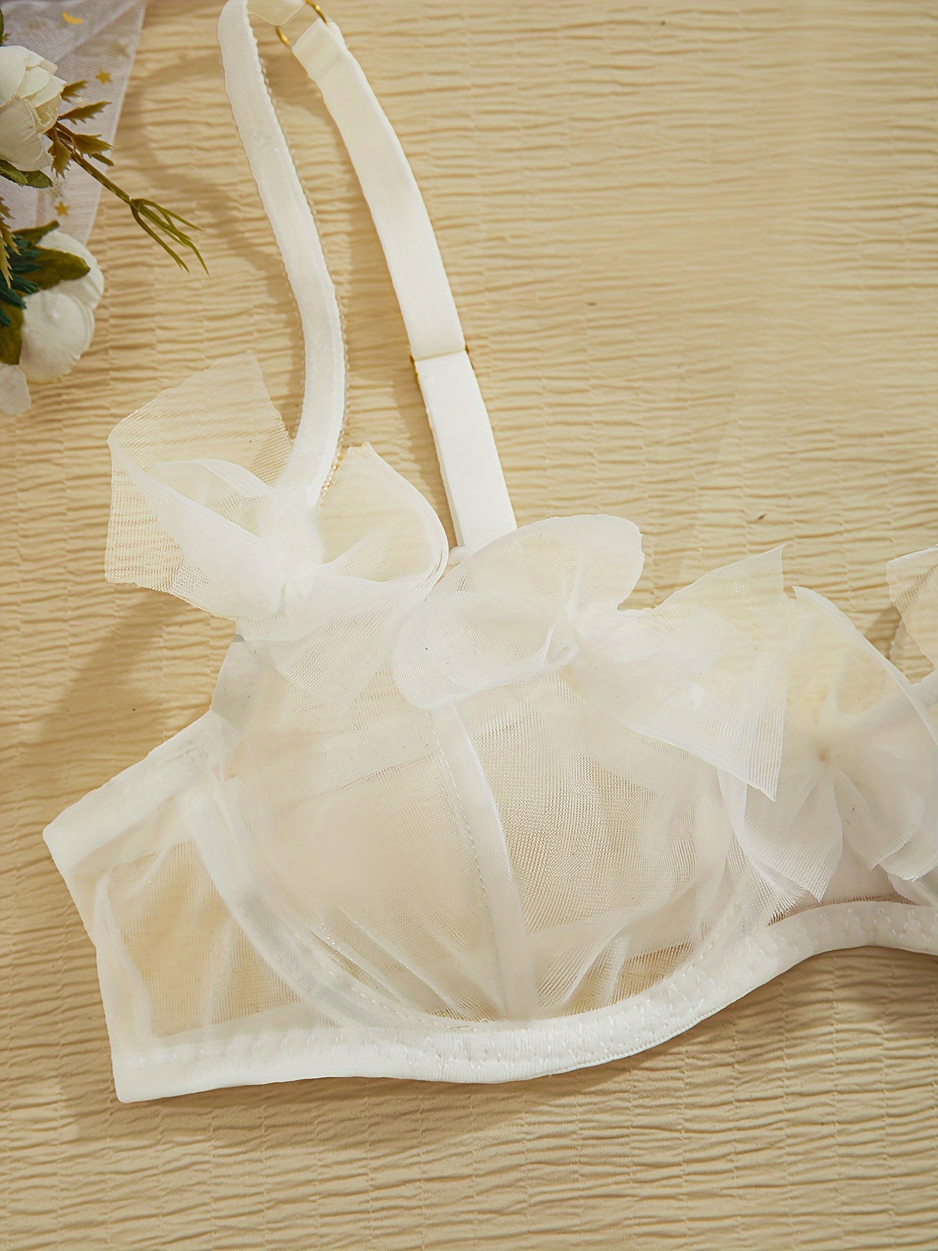 Mesh kamarlik ichki kiyim to'plami, spaghetti tasmalari bilan, bra va ichki kiyimni o'z ichiga oladi, ayollar uchun jozibali kiyim.
