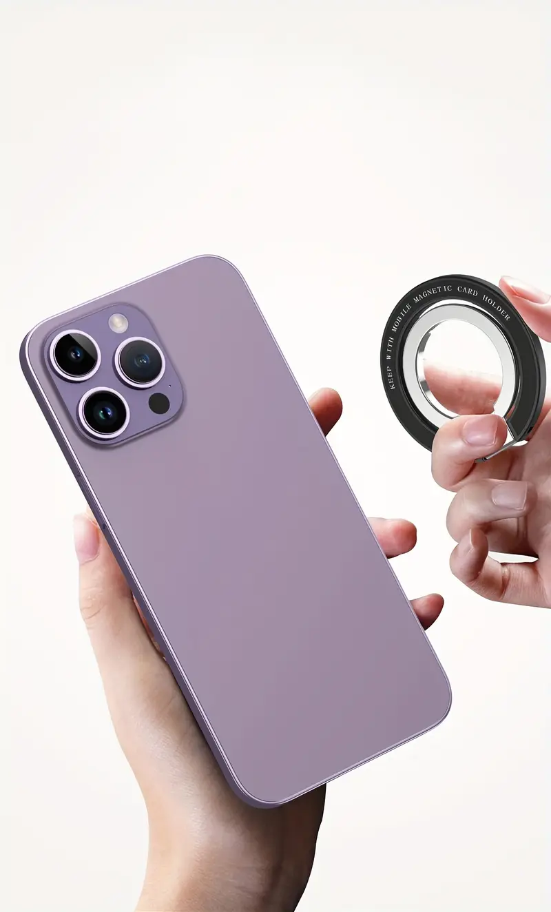 Mobil telefon uchun metall magnit halqa ushlagich, 360 ° aylanuvchi, egiluvchan, ultra-ingichka, avtomobil va ish stoli uchun mos. Rux qotishmasidan tayyorlangan.