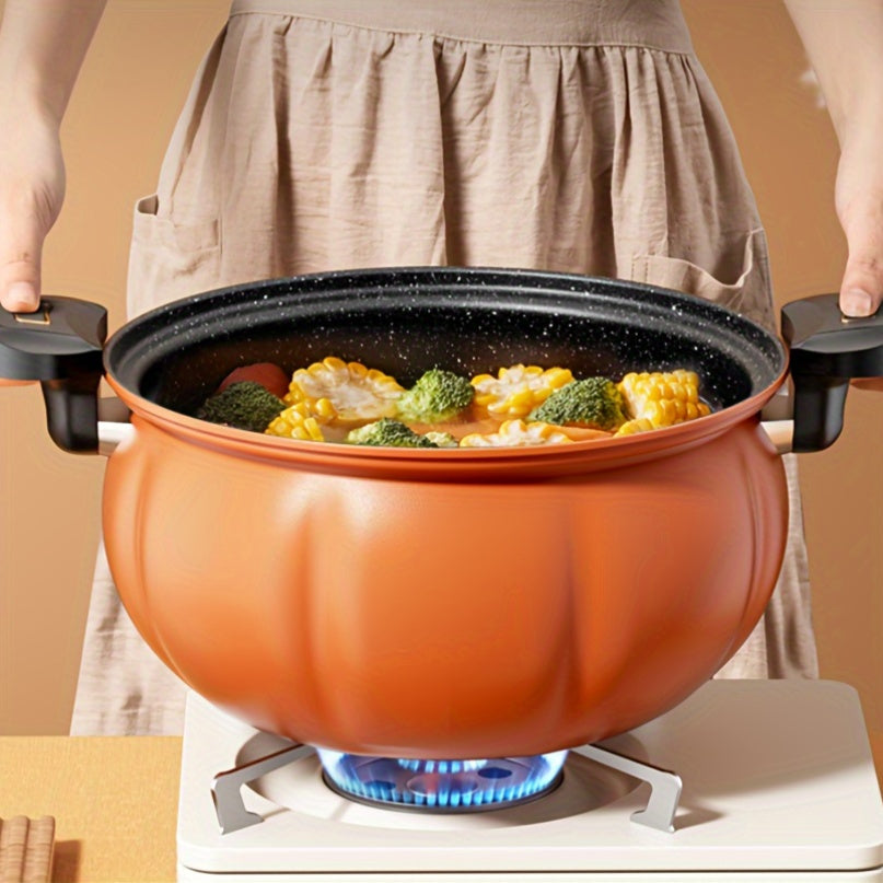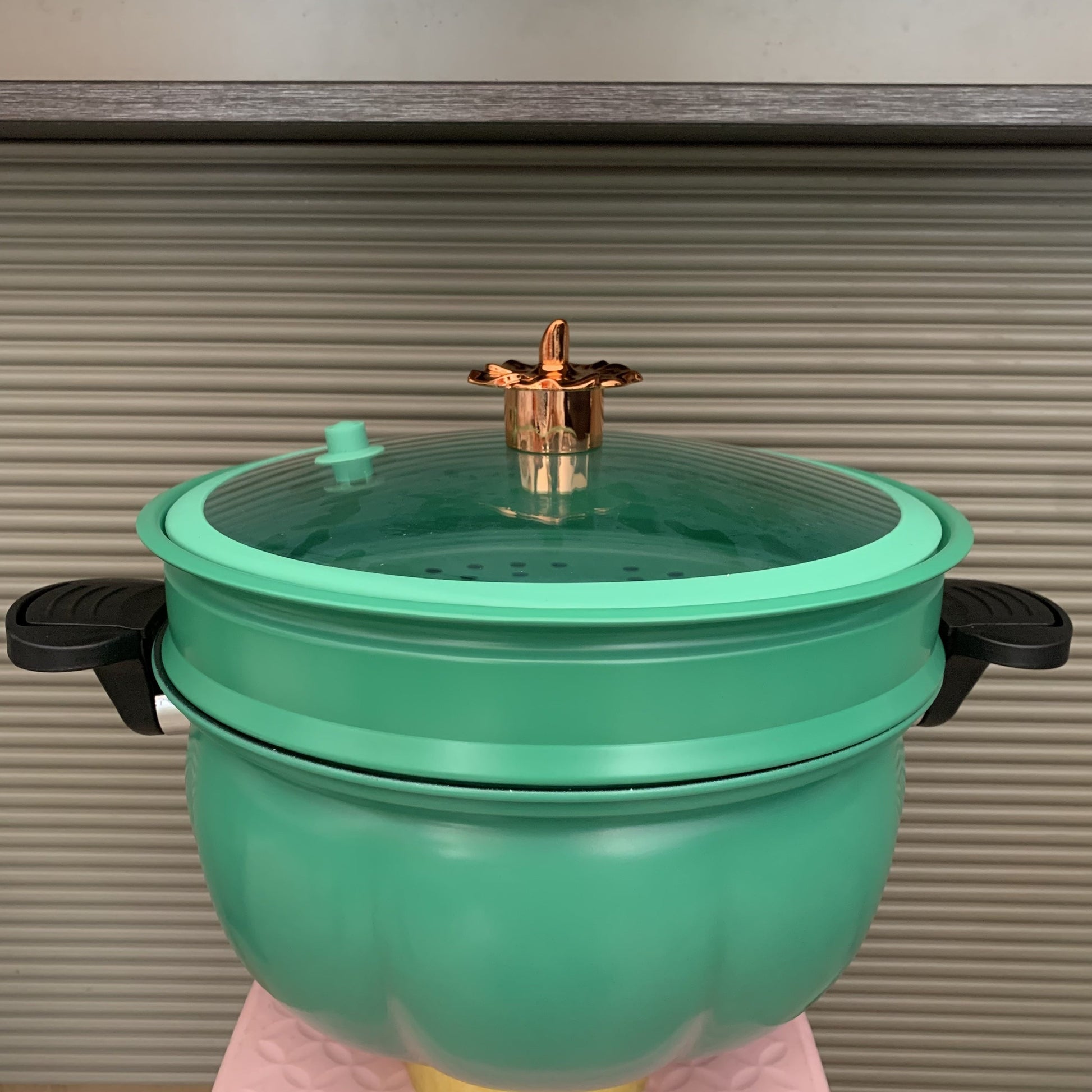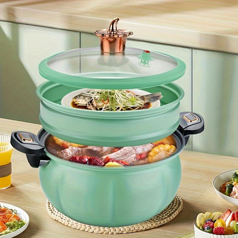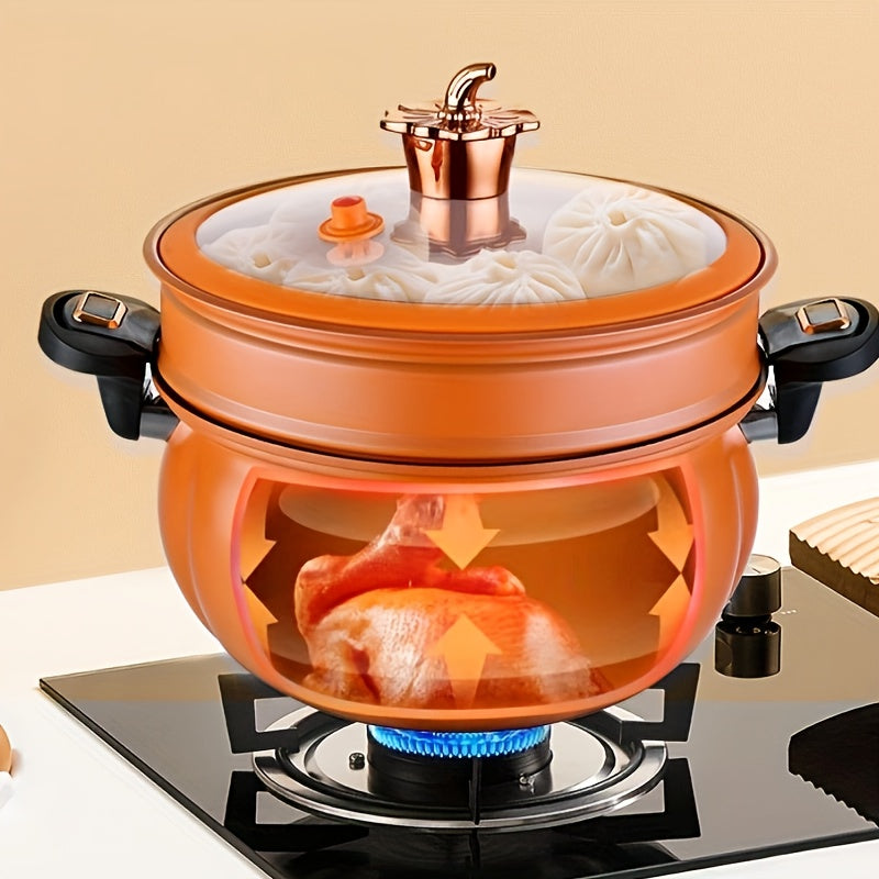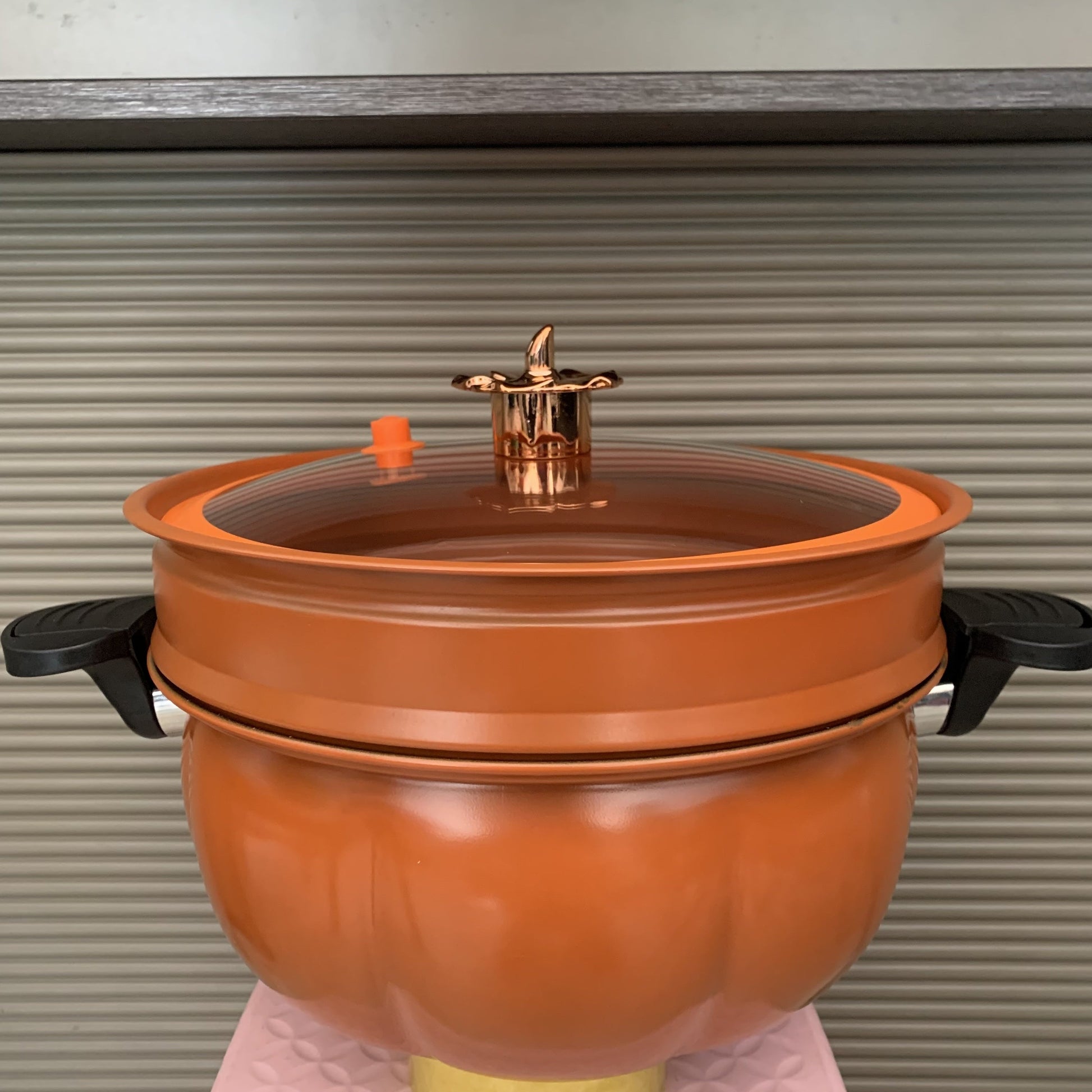 Mikro-bosimda pishiruvchi, bug'li, katta sig'imli, ikki quloqli dizayn, issiqlik izolyatsiyasi, uy oshxonasi uchun qovoq shaklidagi ko'p qatlamli pishirish qozoni