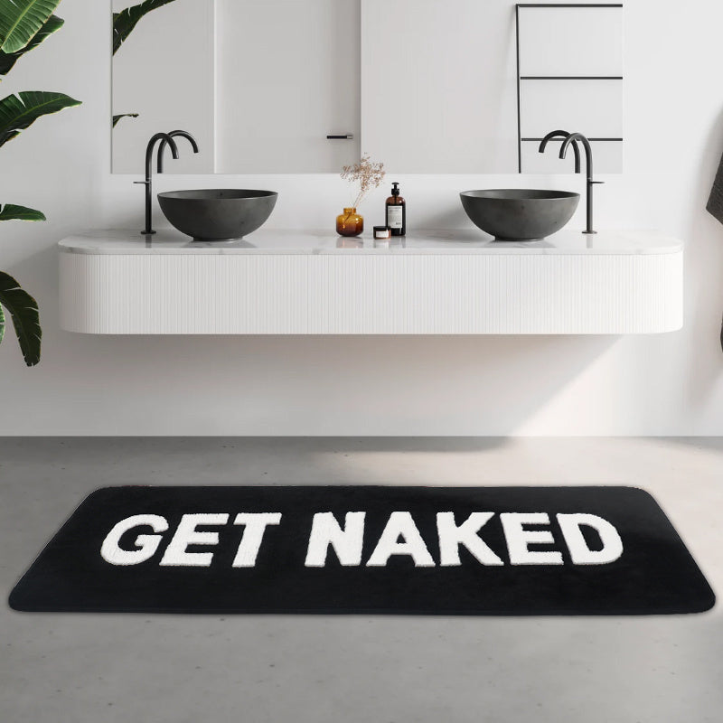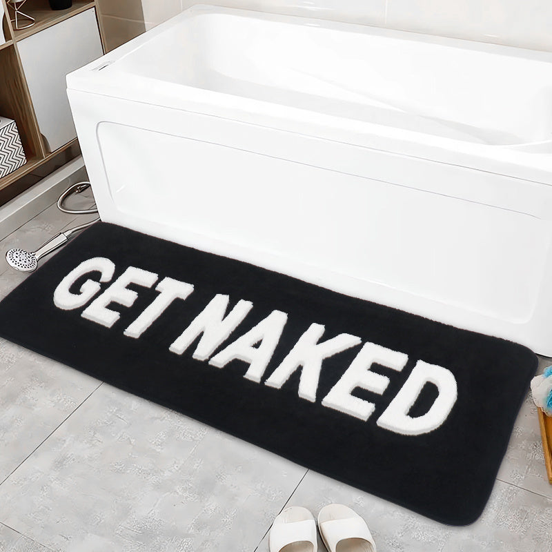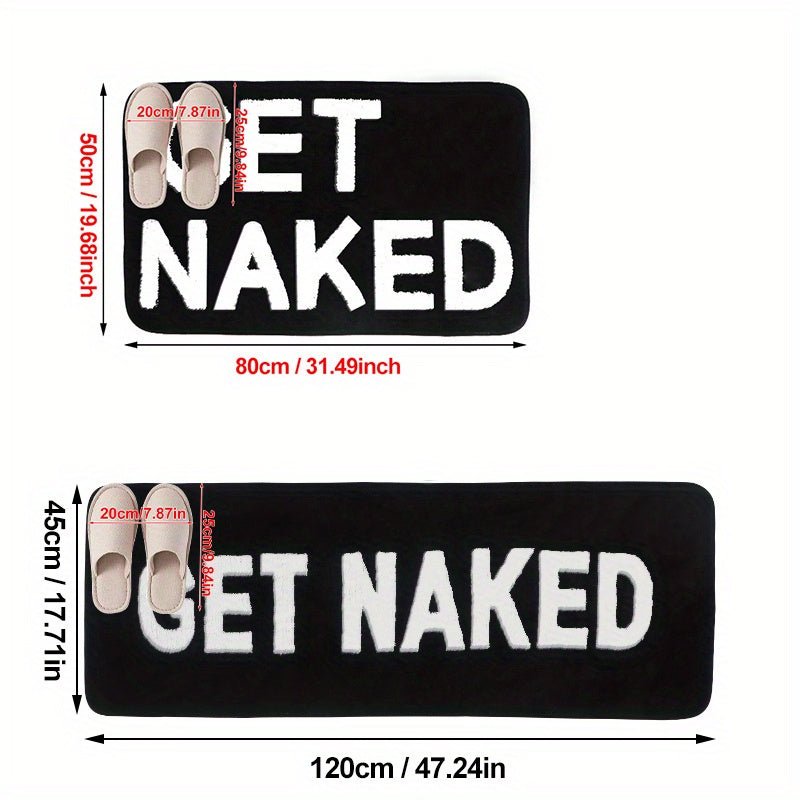 "GET NAKED" dizayni bilan mikrofiber hammom matosi - mashinada yuvish mumkin, hammom, dush yoki spa uchun sirpanmaydigan gilam - yoga, uy yoki kirish joyi uchun qiziqarli va yumshoq mato