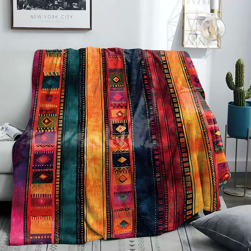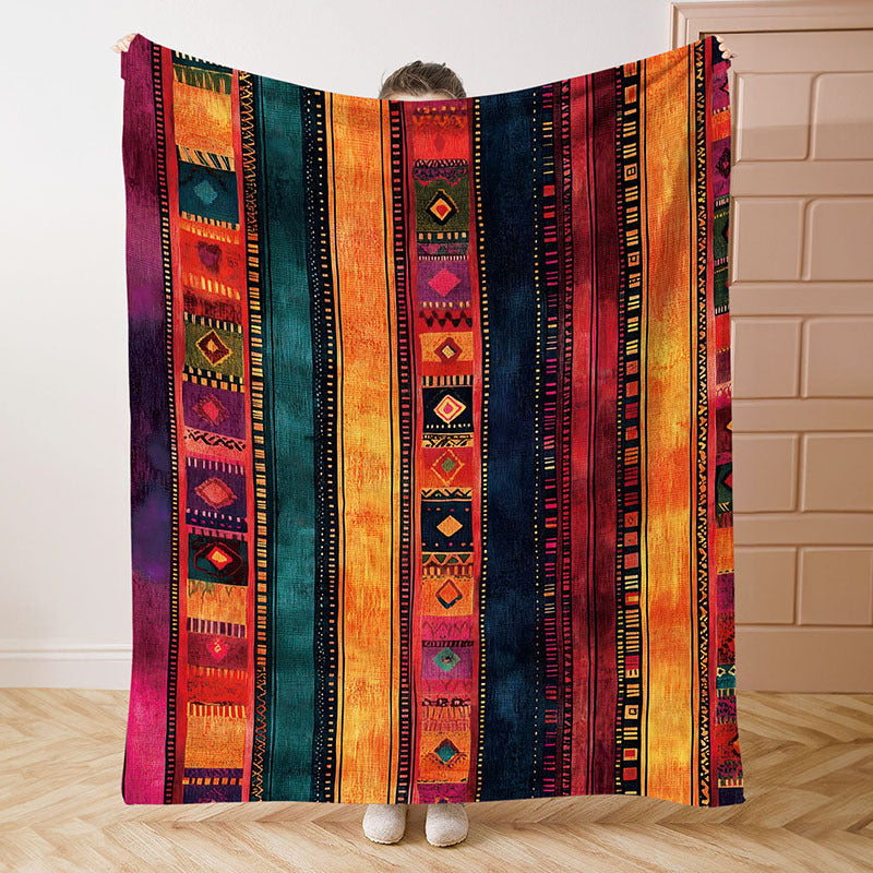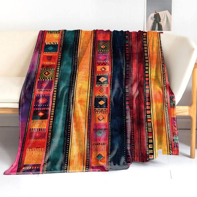 O'rta asr uslubidagi flanel tashqi ko'rinishi - Yumshoq polyester to'qima, raqamli bosma, qabilaviy Mayan naqshi, uy, ofis va lager uchun engil issiqlik. Har bir mavsum uchun mukammal, bu qulay divan va yotoq qoplamasi 200-250g og'irlikda.