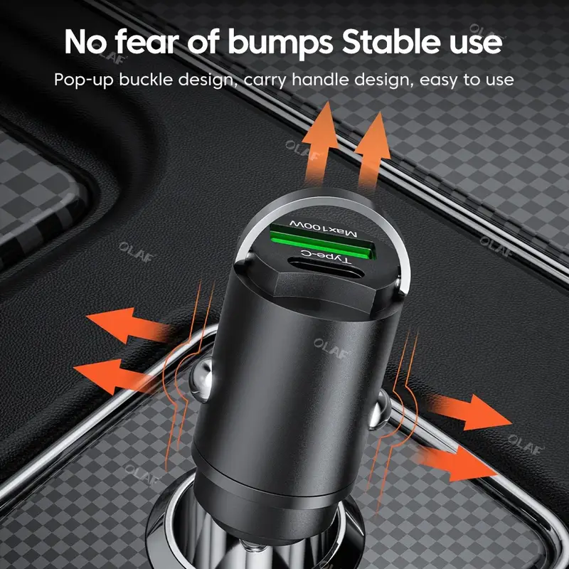 iPhone, Xiaomi, Samsung, Huawei uchun Mini 100W PD QC Tez Zaryadlash Avtomobil Zaryadlovchisi.