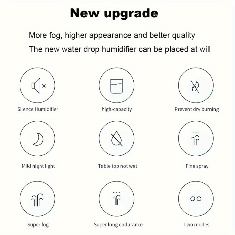 Aroma difuzori bilan mini sovuq namlagich, USB quvvatlanadi va portativ. Avtomobil, ofis, yotoqxona va sayohat uchun ideal. Jim ishlash, tozalash oson va ajoyib sovg'a qiladi. Zamonaviy xususiyatlarga ega.