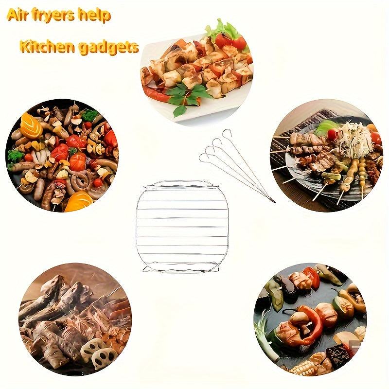 Havo fritöyeri uchun Mini Double Deck Grill, Dumaloq Paslanmaydigan Po'lat Grill, Bug' Rack, Baliq Rack, Non Rack va Fritöyer Aksesuarlar Asboblari.