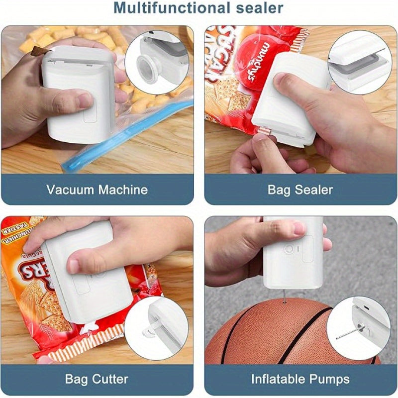 Mini qo'l vakuum muhrlagichi, kesgich va sumka muhrlagichi USB zaryadlash bilan. Chip sumkalari uchun yarim avtomatik issiq muhrlagich. 4.44W quvvat va 600mAh litiy batareyasi.