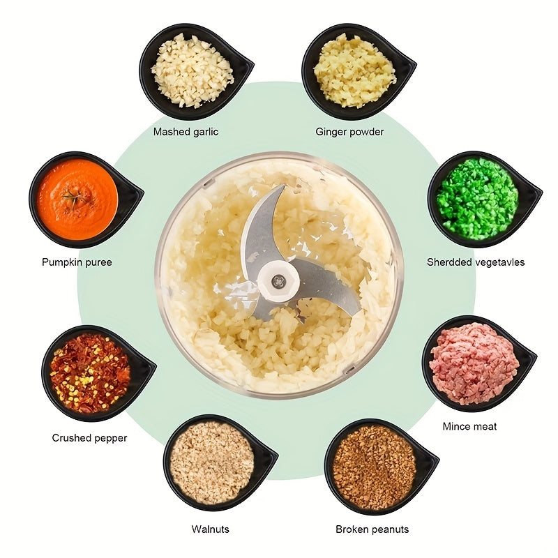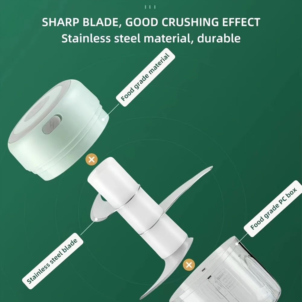 Elektr oziq-ovqat maydalagichi Mini oshxona protsessori USB qayta zaryadlanadigan yashil portativ sarimsoq piyoz sabzi blenderi
