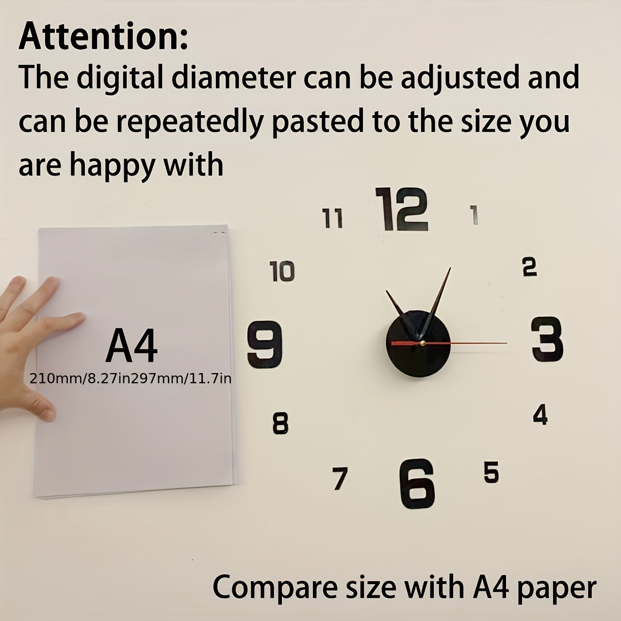Zamonaviy 3D raqamli devor soati, jim ishlash va sozlanadigan o'lcham bilan, yashil ko'rsatkichli batareyali mexanik soat, yashash xonasi va yotoqxona uchun. AA batareyasi talab qilinadi.