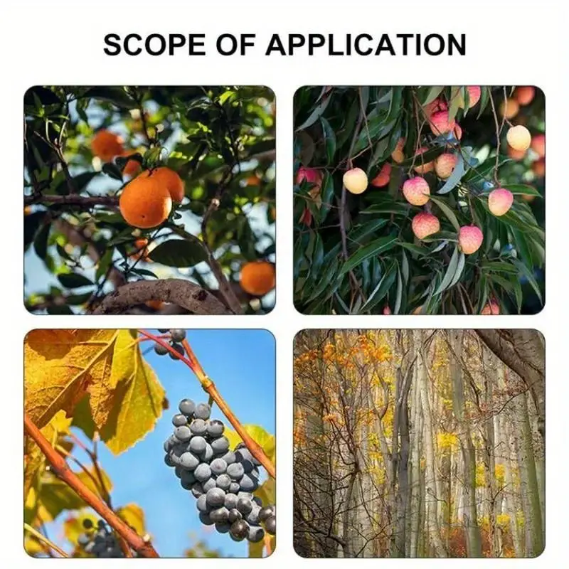 Zamonaviy meva yig'uvchi, uzatma ipi va uyda foydalanish uchun mehnatni tejovchi qirqish qaychisi bilan, mustahkam ushlash va yuqori shoxlarga oson yetishish imkoniyatlari bilan.