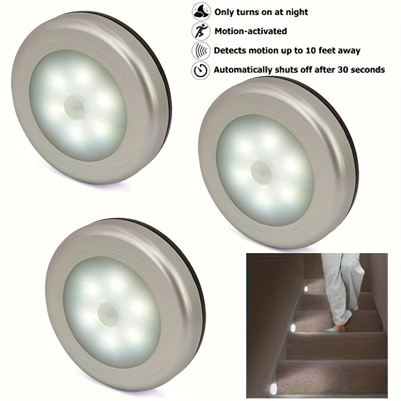 Harakat Sensorli Yoritgich, Ichki LED Tun Yoritgichi, Simsiz Batareya Bilan Ishlaydi, Oshxona, Qadam, Yotoqxona, Hammom uchun. 1 dona, 3 dona yoki 6 dona mavjud.