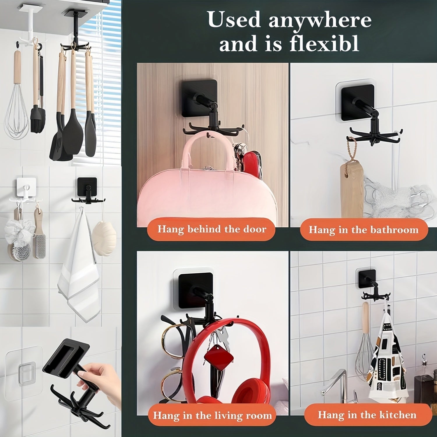 Aylanuvchi plastmassa idish tutgich devorga o'rnatiladigan qora kosmik tejovchi oshxona tashkilotchisi
