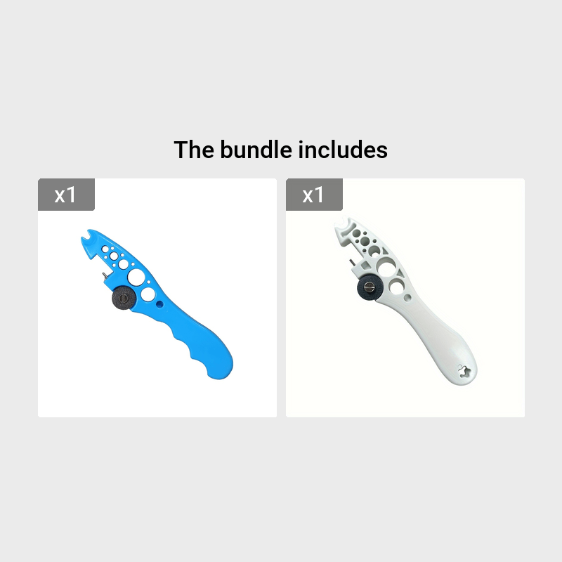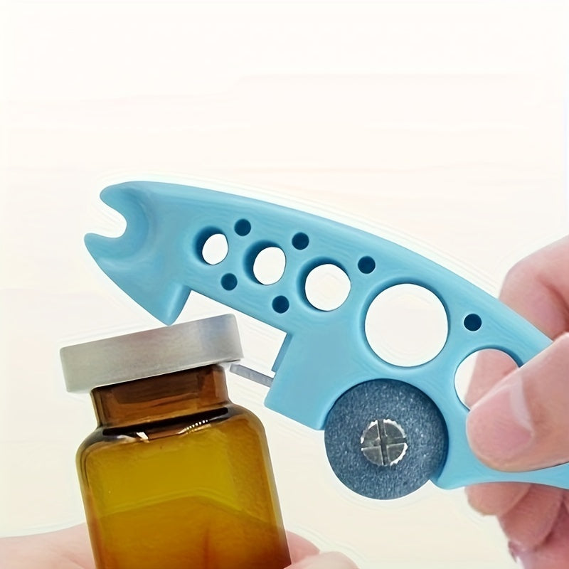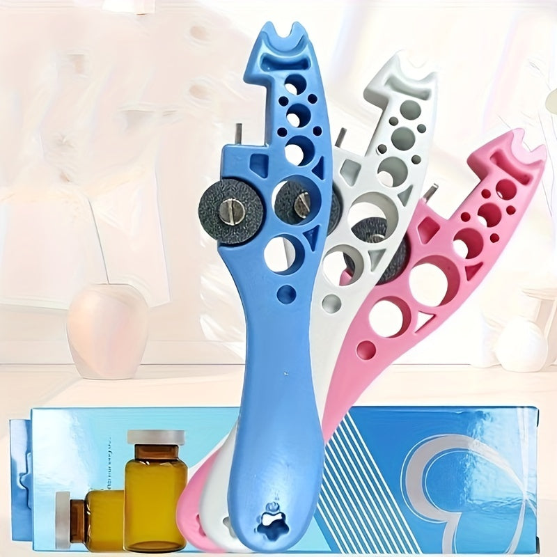 Ko'p funksiyali ampulalar va shisha idishlarni ochish uchun almashtiriladigan maydalash g'ildiragi bilan. Oson dori boshqaruvi uchun ko'k/oq yoki pushti/qora rangdagi qo'l bilan ishlatiladigan plastik kesgich.
