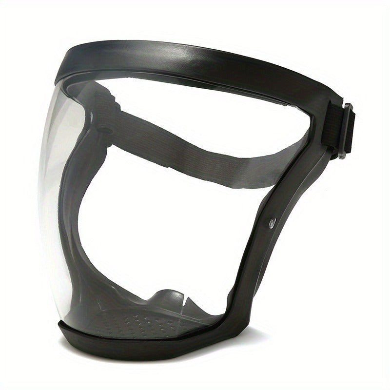 Tashqi, partiya va oshxona foydalanishi uchun ko'p funksiyali to'liq yuzli shaffof niqob. Bu tutun o'tkazmaydigan, chang o'tkazmaydigan, suv o'tkazmaydigan va chiroyli xususiyatlarni himoya qiladi.