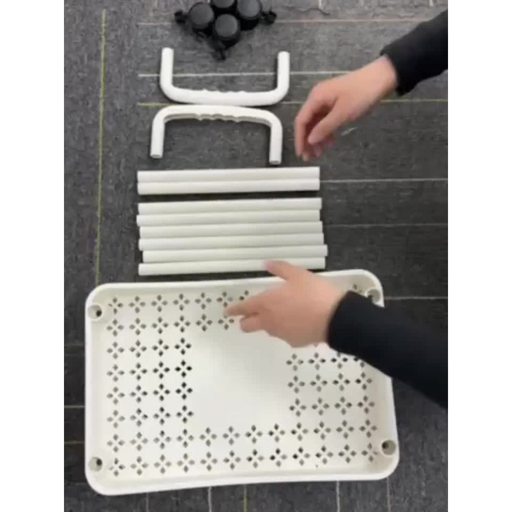 Oshxona, hammom va yotoqxona uchun ko'p qatlamli aylanuvchi saqlash aravachasi. Yengil oq plastikdan tayyorlangan.