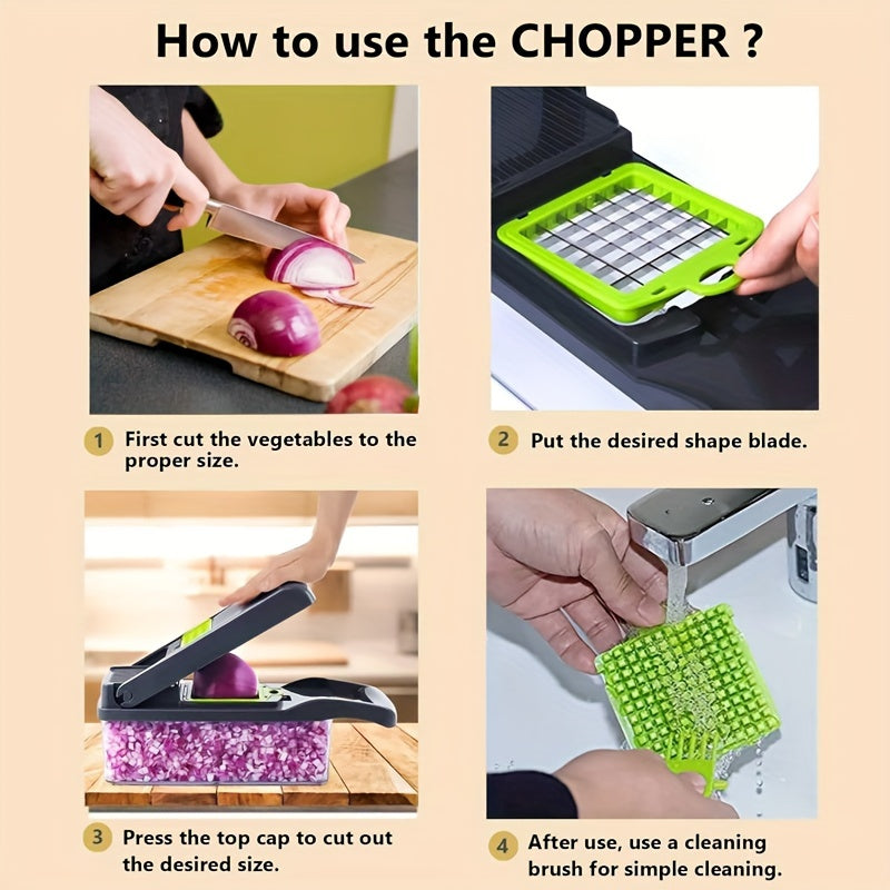 15-in-1 Sabzavot maydalagich va meva kesgich piyoz, kartoshka, sabzi uchun