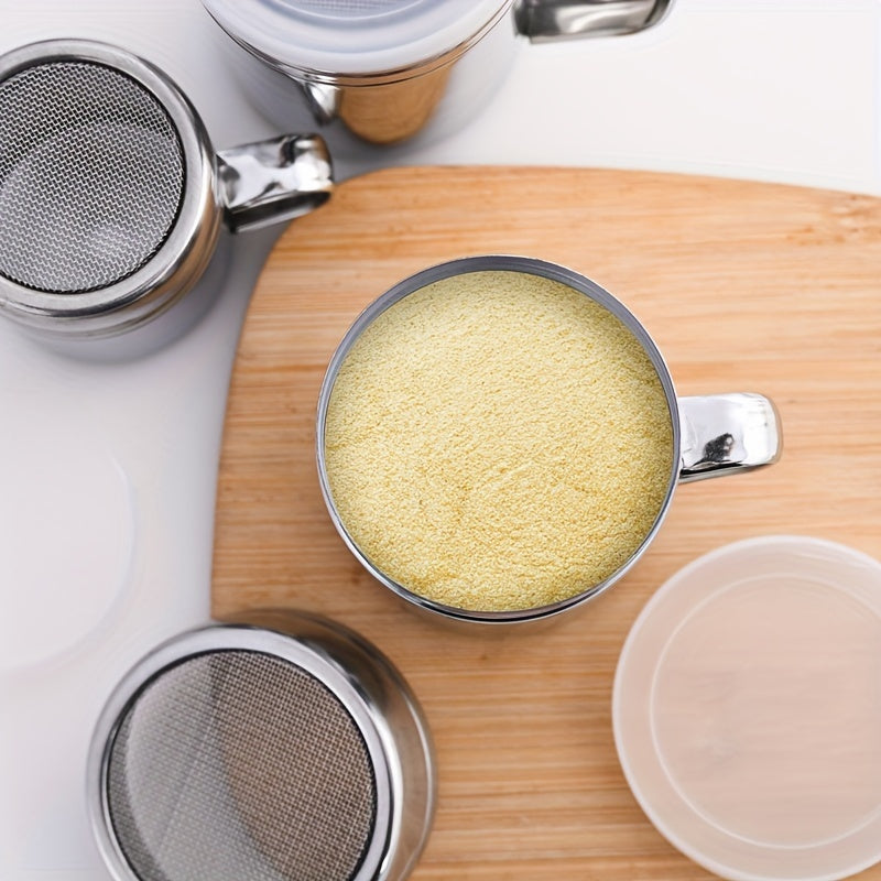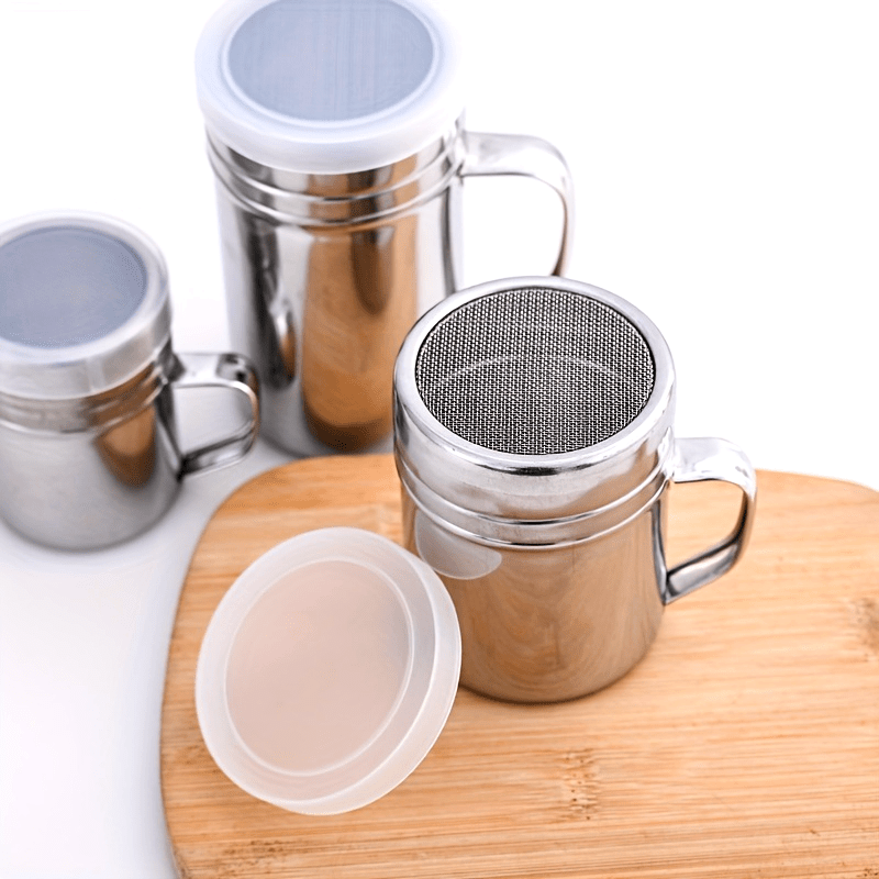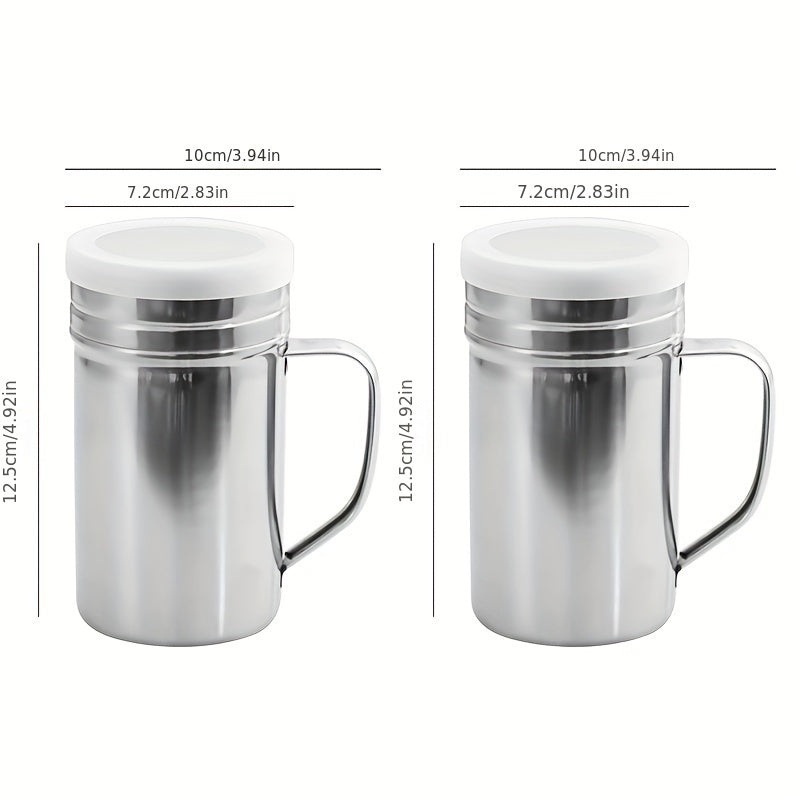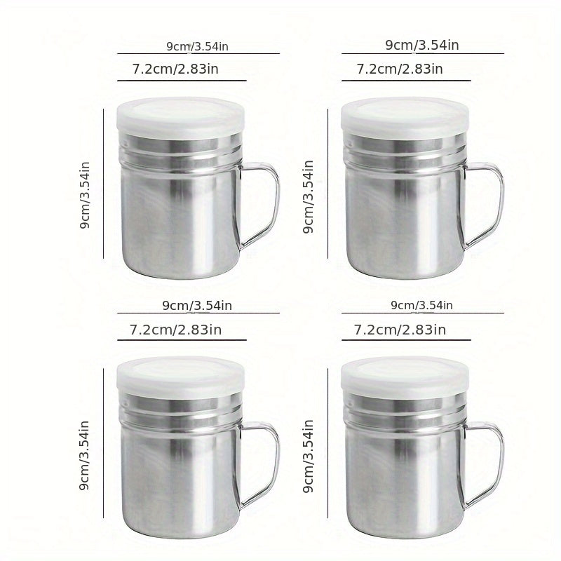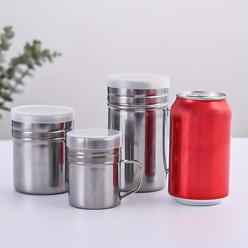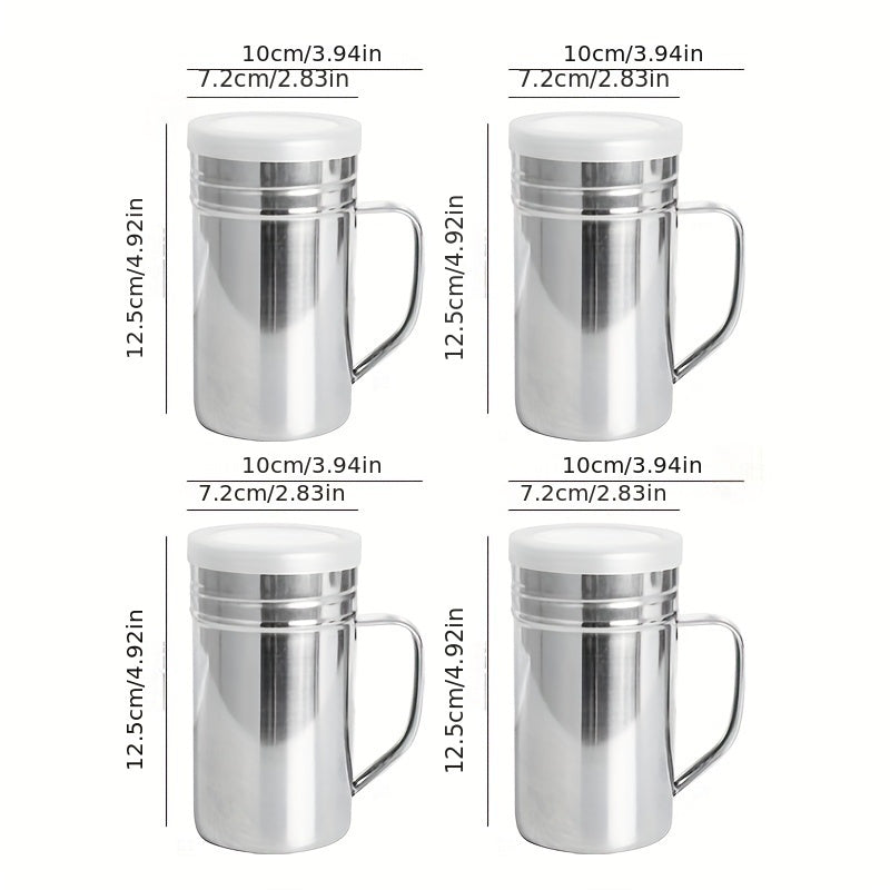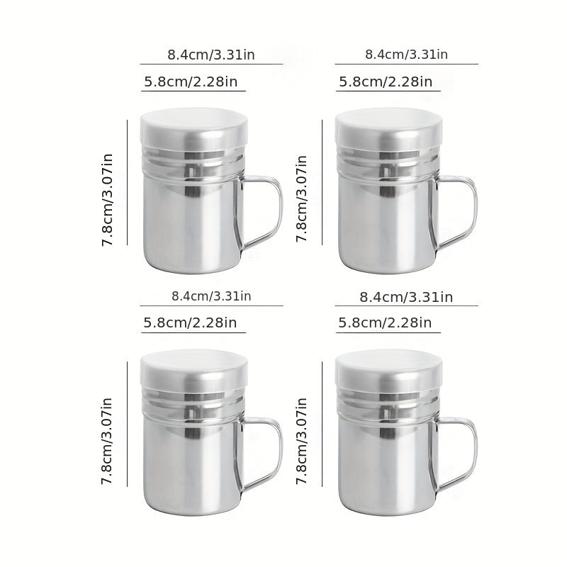 Ko'p maqsadli zanglamas po'latdan yasalgan ziravorlar idishi, tutqichi va qopqog'i bilan, uylar, kafelar va restoranlarda shakar, dolchin, murch, tuz va ziravorlarni saqlash uchun mukammal.