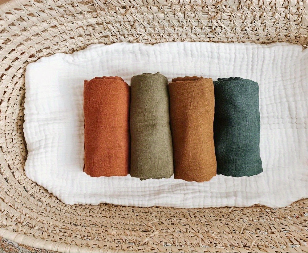Muslin o'ralgan to'shak - Bir xil rangli o'ralgan, hammom sochiq, aravachani yopish