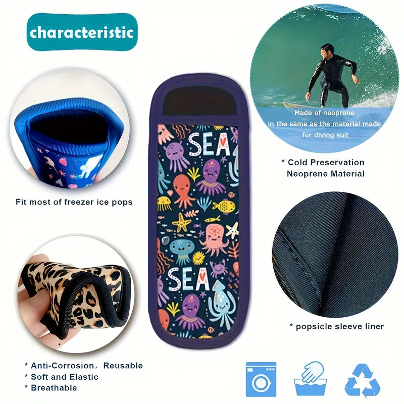 Neopren Muzli Popsicle Qopqog'i - Popsikllaringizni uslubda sovuq tuting, bu yoqimli va qayta ishlatiladigan qopda. Sizning oshxonangiz va ovqatlanish aksessuarlaringiz uchun mukammal, turli naqshlarda mavjud.