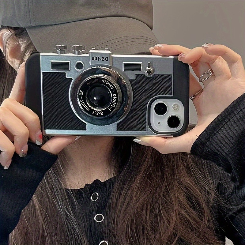 Yangi 3D ijodiy retro nostaljik kamera telefonini himoya qiluvchi qopqoq, kesma tasma bilan, yuqori sifatli yumshoq qobiq, Apple Phone 11-16 ga mos, mukammal bayram sovg'asi