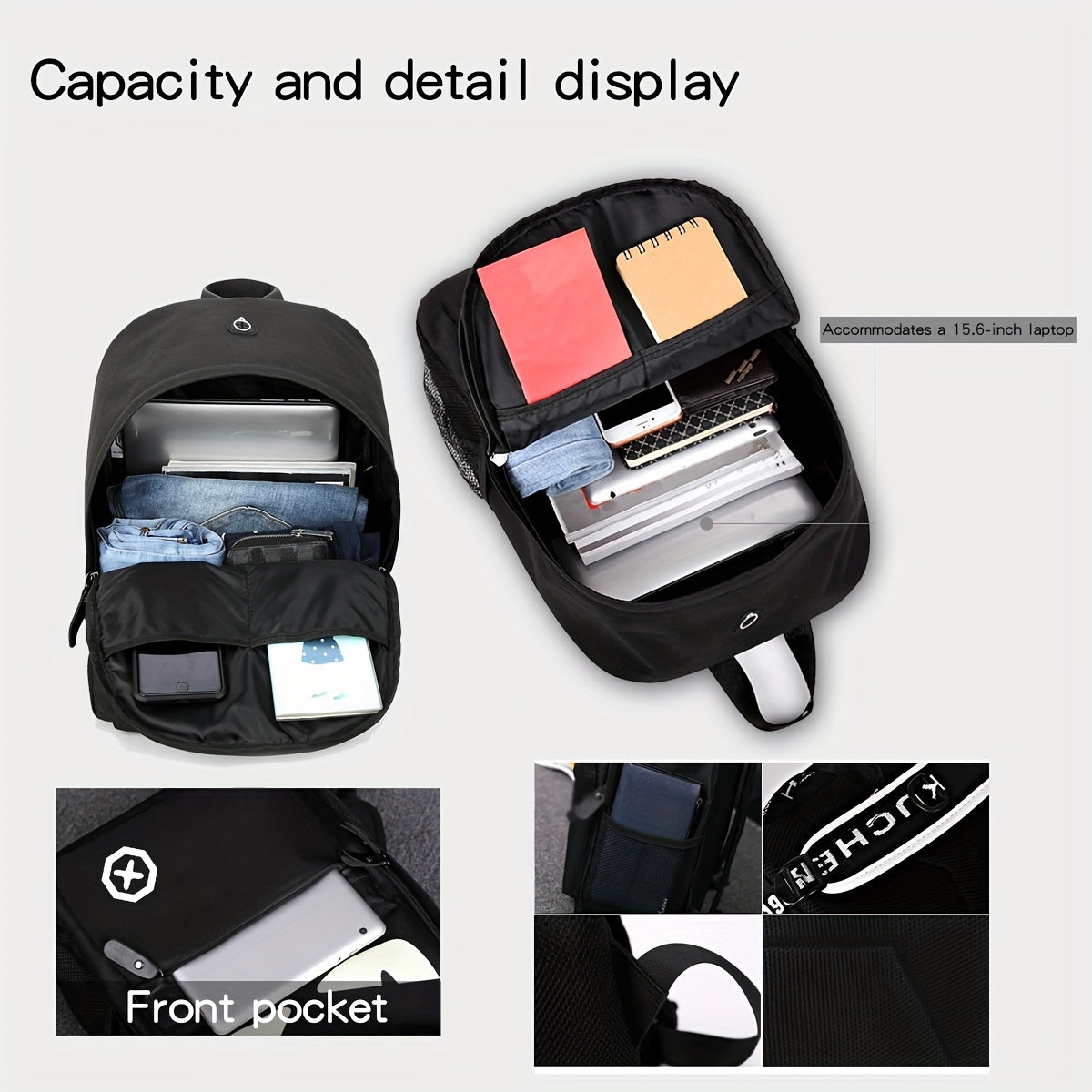 Kundalik erkaklar uchun katta sig'imli 15.6 dyuymli noutbuk uchun backpack to'plami, fluorescent kechki dizayni, sayohat sumkasi, 3 ta qism