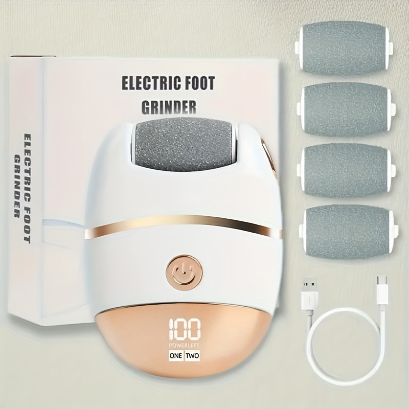 Yangi elektr oyoq maydalagichi, 4 ta almashtiriladigan bosh, ikki tezlik, LED displey, USB zaryadlash va uzoq muddatli 500mAh batareya bilan.