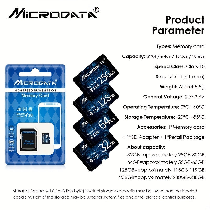 Yangi mikro TF SD kartalar, tez saqlash uchun 32GB SDHC Class 10, shuningdek, 64GB, 128GB va 256GB U3 SDXC mini flesh xotira drayverlari, smartfonlar uchun SD adapter bilan.
