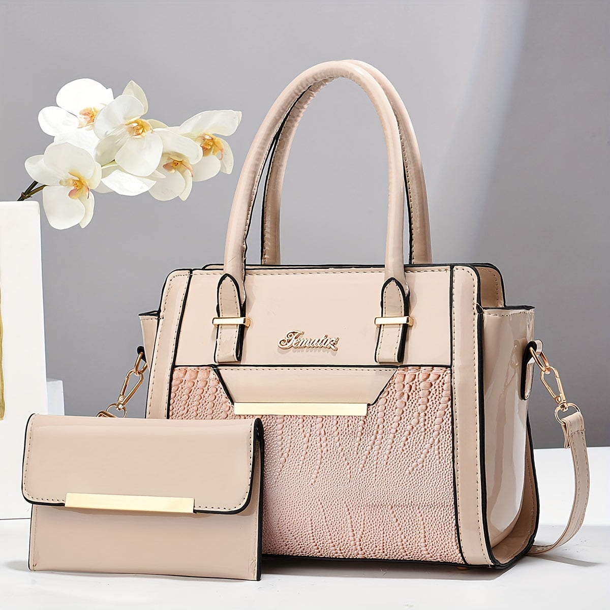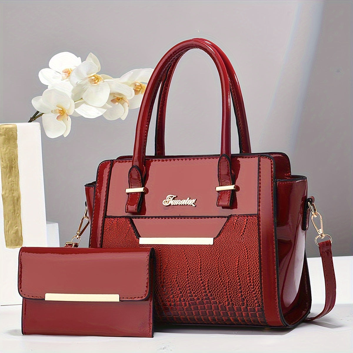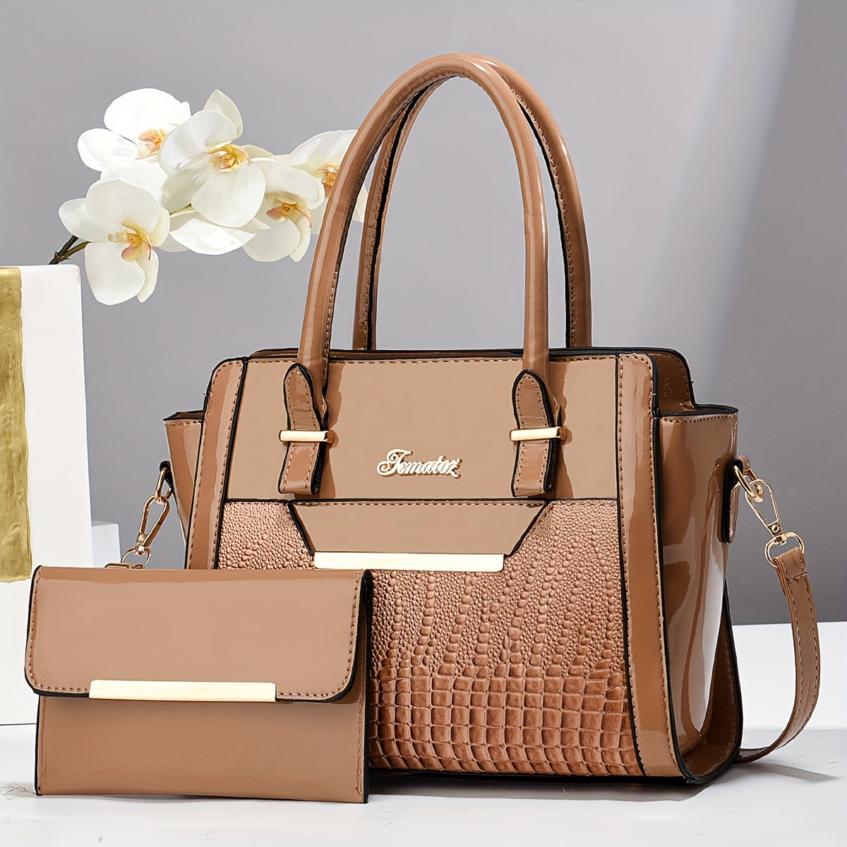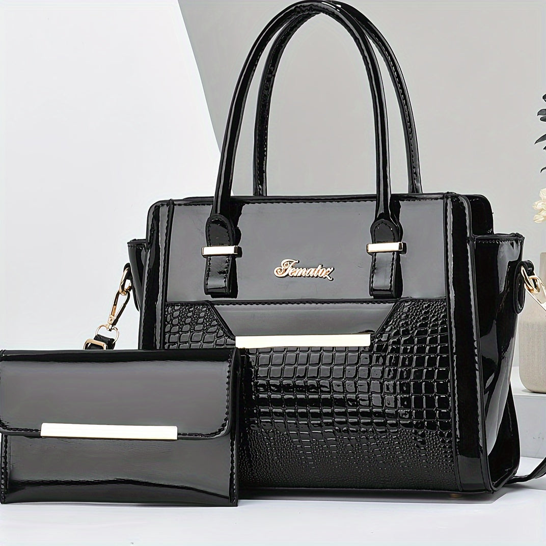 Ayollar uchun katta sig'imli, yaltirab turuvchi ikkita to'plam sumka, krokodil naqshi, yelka yoki kesma foydalanish uchun mos. Ishga borish, tug'ilgan kunlar, uchrashuvlar, biznes uchrashuvlari, norasmiy tadbirlar uchun mukammal.