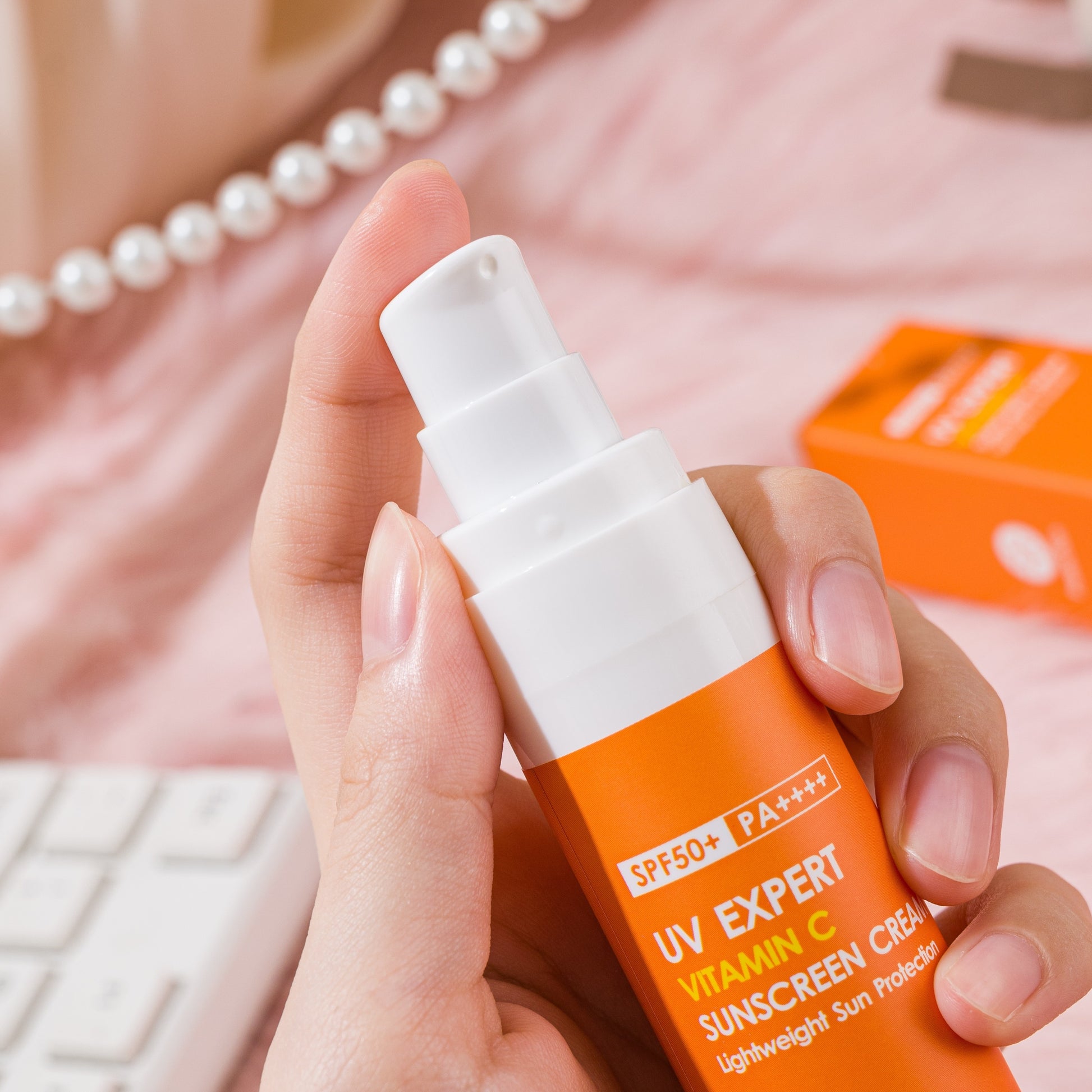 Yuz va tanaga mo'ljallangan yog'siz Vitamin C quyoshdan himoya kremi, quyoshli kunlarda ochiq havoda faoliyatlar uchun ideal.